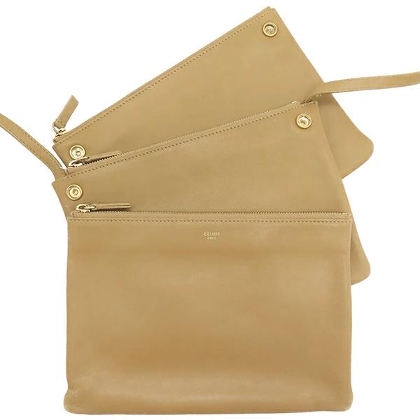 セリーヌ CELINE ショルダーバッグ トリオ スモール ショルダーバッグ ラムスキン ライトブラウン 薄茶 斜め掛け ゴールド金具 187603BEB02BA レディース 【保存袋】 【中古】