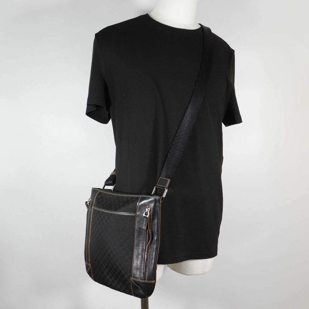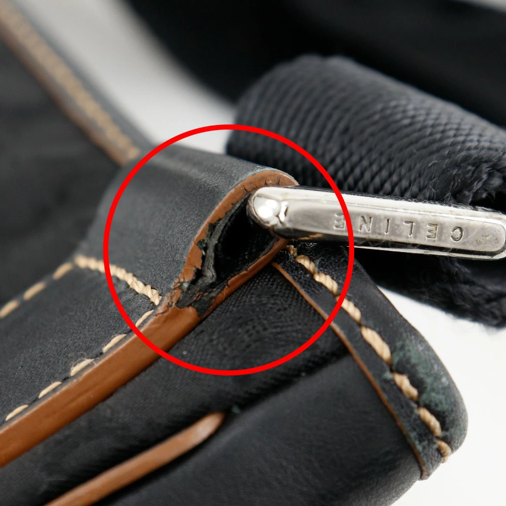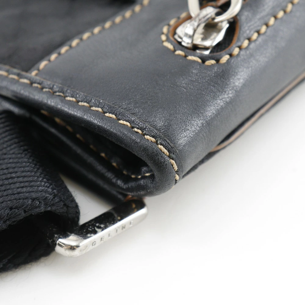 Celine Macadam Shoulder Bag 157112JBU, Nylon Canvas and Leather, Black, A5 Size, Zipper, Unisex, Pre-owned, B-Rank