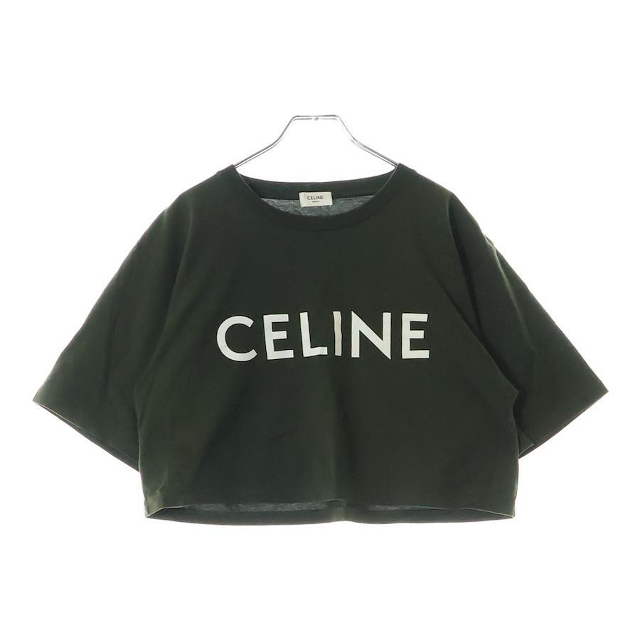 Celine Women's Cropped Logo Print Short Sleeve T-Shirt, Khaki, Size M (2X761671Q)