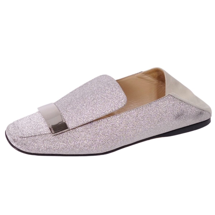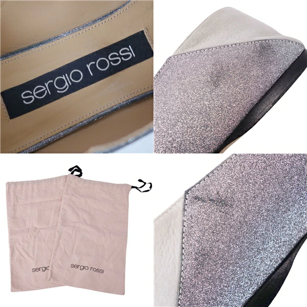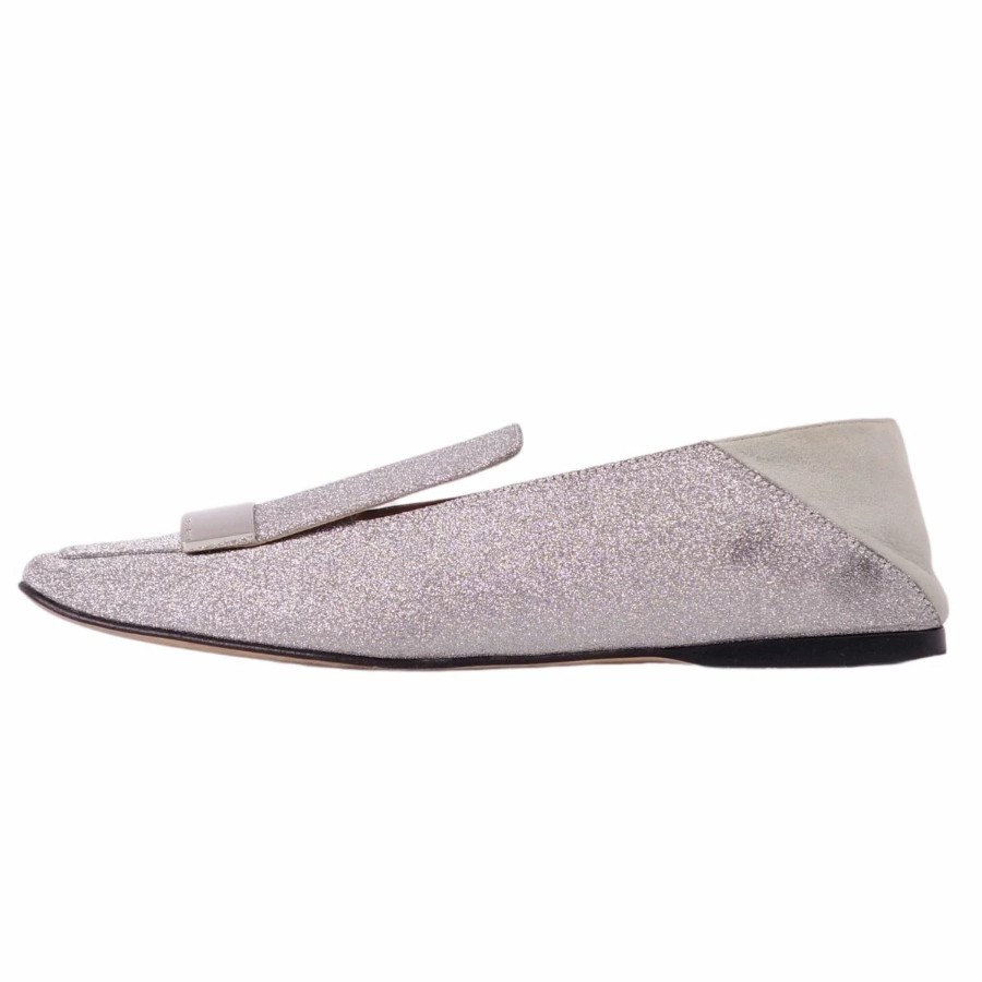 セルジオロッシ SERGIO ROSSI ローファー sr1 バブシュー グリッター シューズ 靴 レディース イタリア製 シルバー サイズ36.5(23.5cm相当)