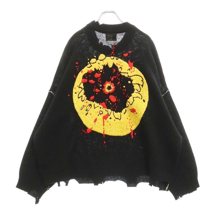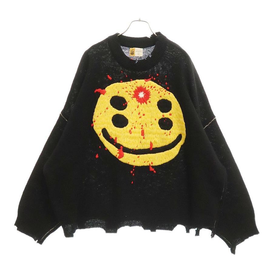 [モデル]24AW CP CREW KNT SMILE スマイル ダメージ加工プルオーバーニット セーター SM-YS1-0000-C07 ブラック
