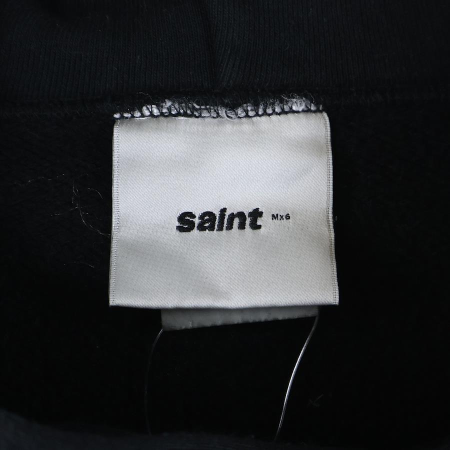 [モデル]25SS SAINT MX6 HOODIE ロゴ刺繍 プルオーバースウェットパーカー フーディー ブラック SM-HR8-0000-049