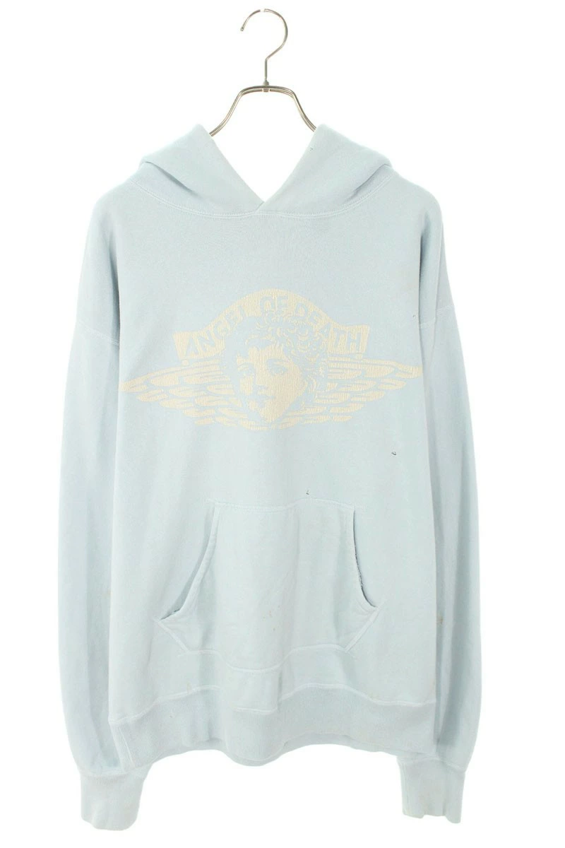 SAINT MICHAEL Wing Logo Print Distressed Pullover Hoodie (Light Blue) Size: L 21SS SM-S21-0000-042 [329052] [SB01] [Men's] [Pre-owned] bb420#rinkan*B