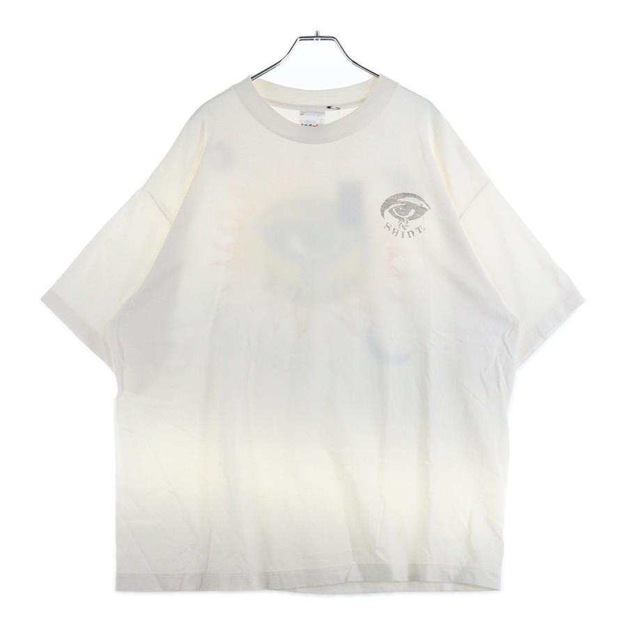 [モデル]SS TEE - EYE- SM-HR1-0000-021 ヴィンテージ加工アイプリント クルーネック半袖Tシャツ ホワイト