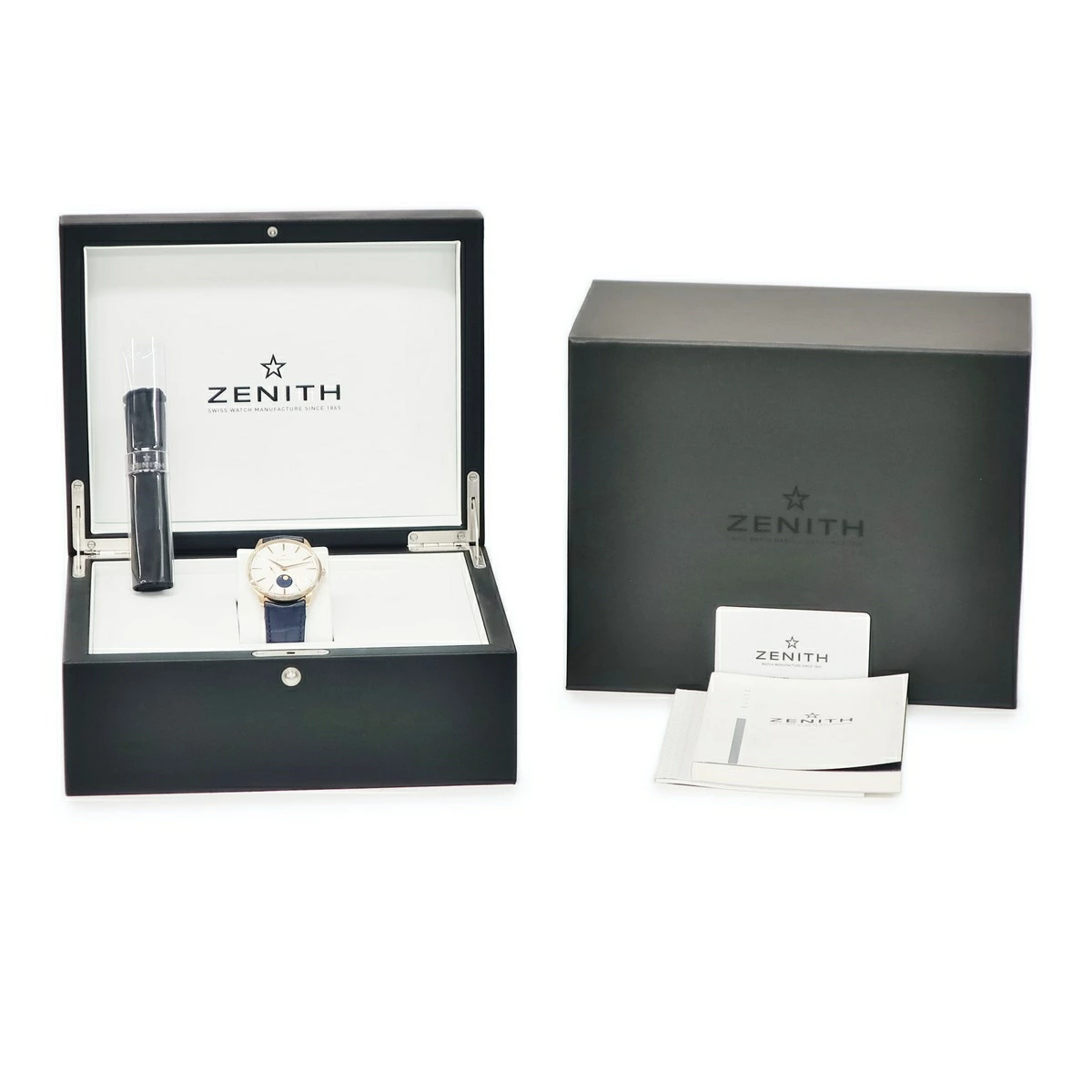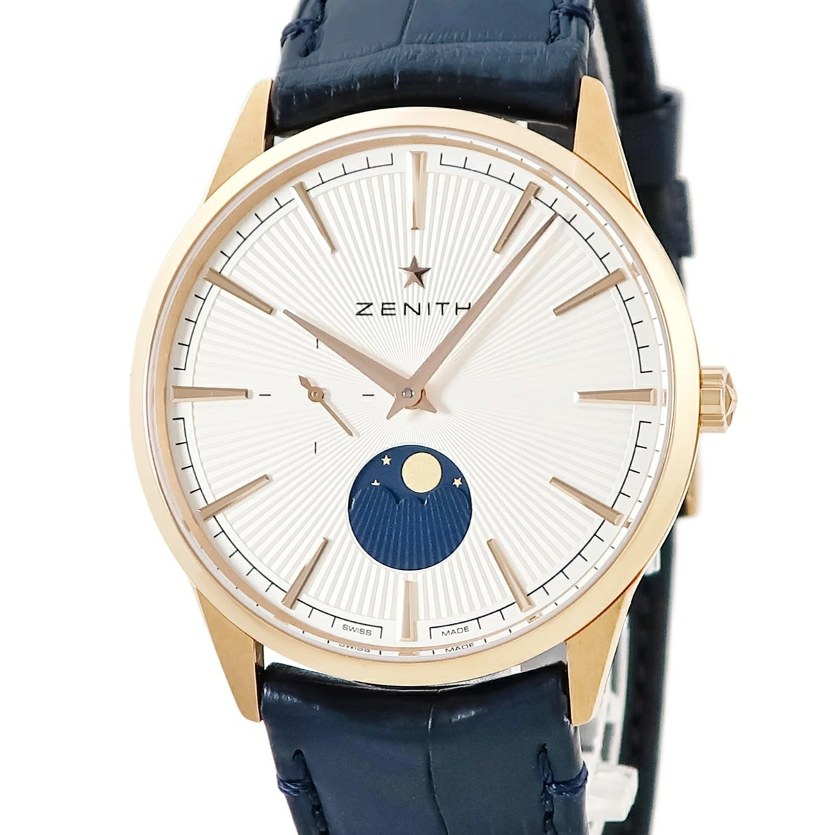 ゼニス ZENITH エリート ムーンフェイズ 18.3100.692/01.C922 新品同様 K18RG無垢 バー ギョウシェ メンズ 腕時計自動巻き シルバー 【中古】【店頭受取不可】