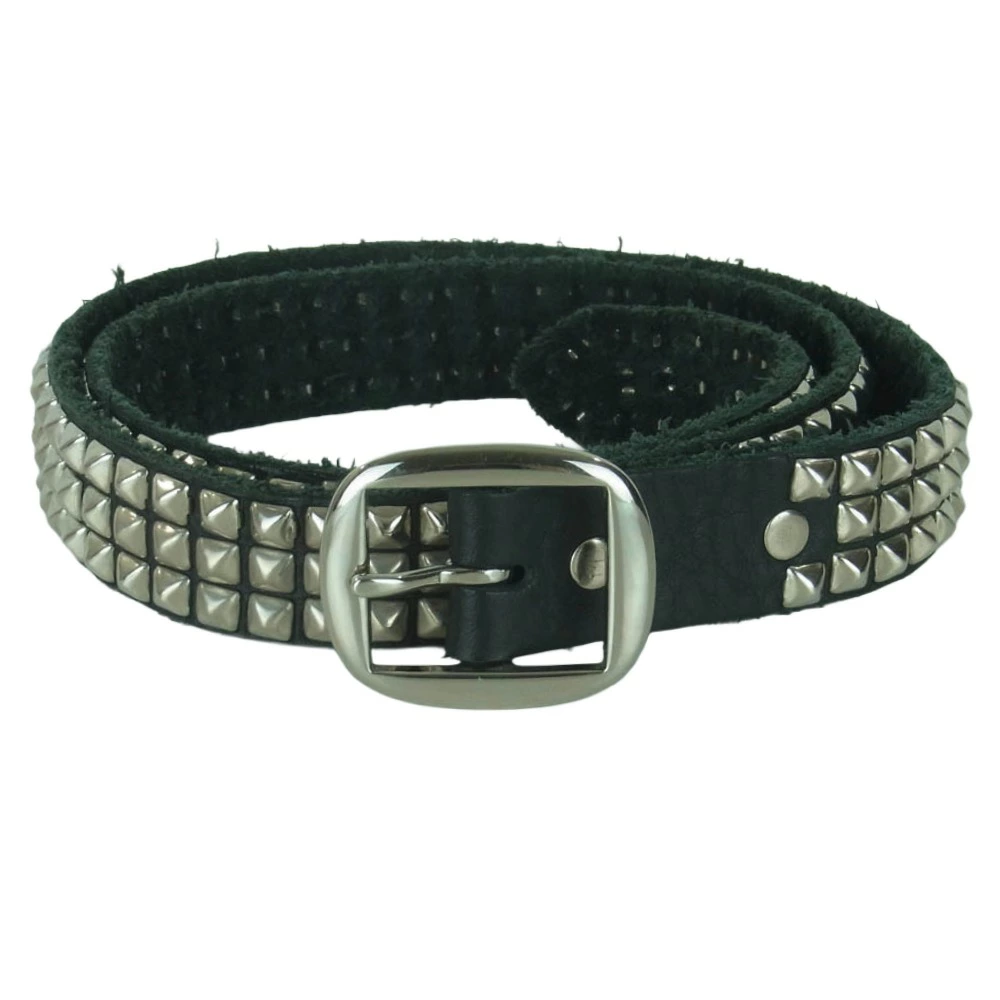 Pre-owned Solid Brass Pyramid Stud Leather Belt in Black for Men