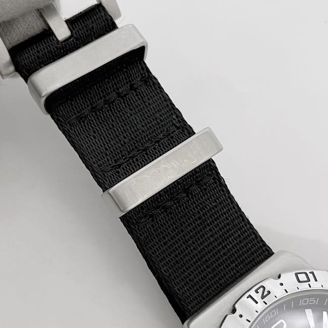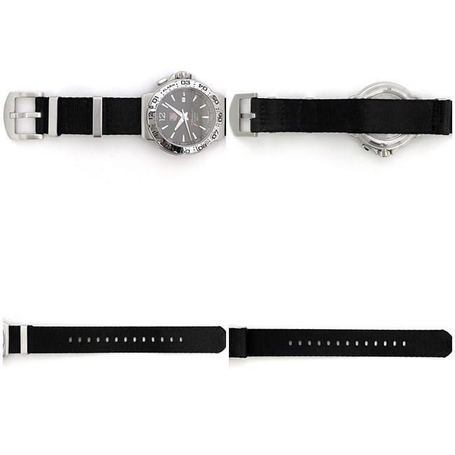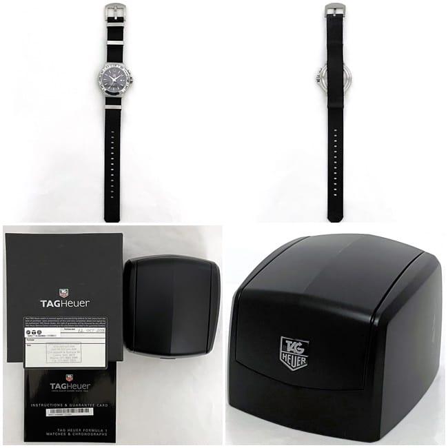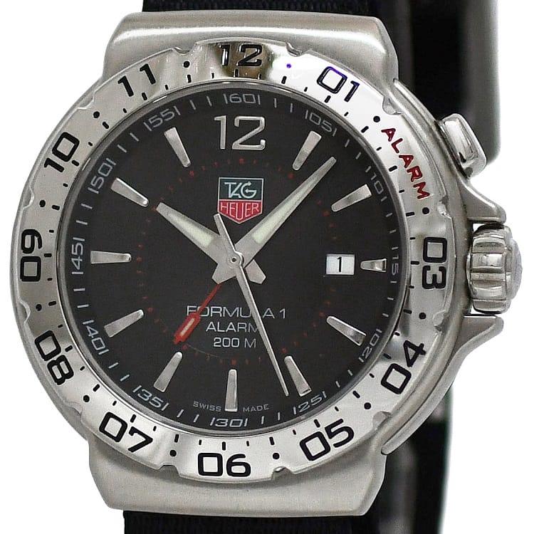 タグホイヤー 腕時計 フォーミュラ1 f-22817 ブラック シルバー WAC111A 美品 SS ポリエステル 中古 クオーツ LN8*** TAG Heuer 男性 時計 日付 三針 電池式 黒文字盤 デイト メンズ ウォッチ 箱付き 定番 人気 ブランド 本物 鑑定済み