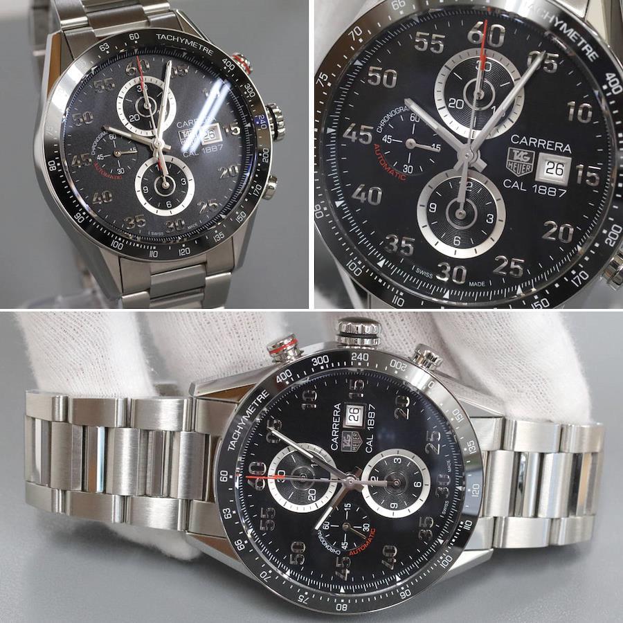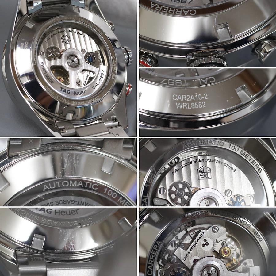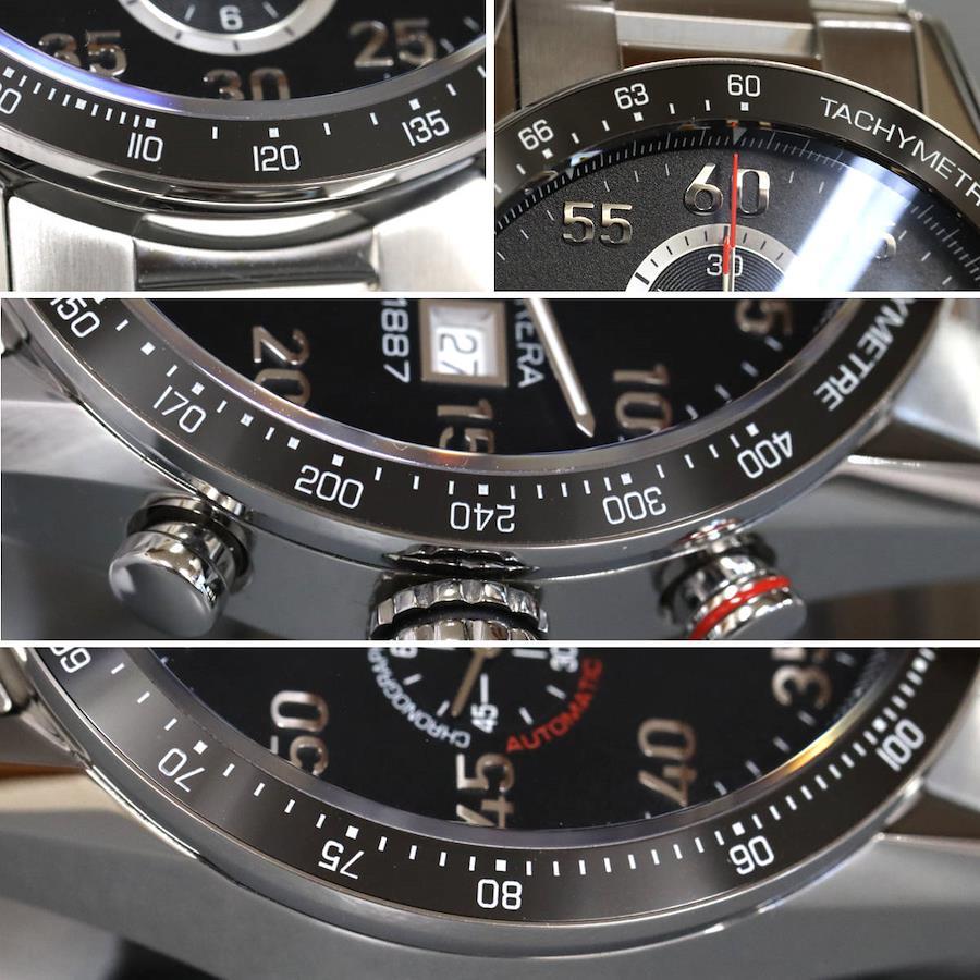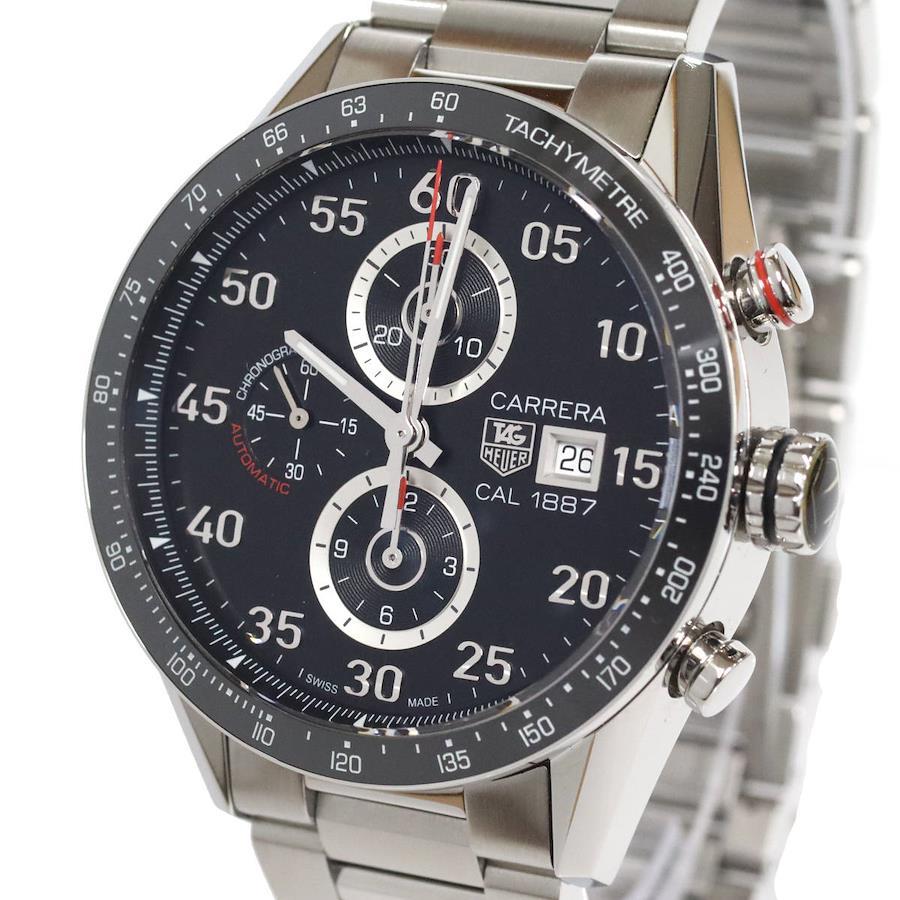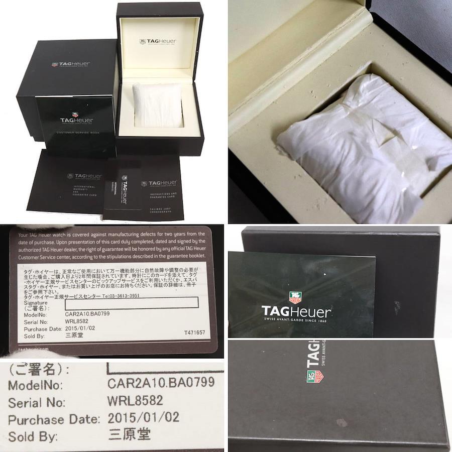 タグホイヤーのメンズウォッチ、カレラ キャリバー1887 クロノグラフ(CAR2A10.BA0799)の中古品です。ケース側面 1時方向のラグに傷があります。ケース裏 ベルトに使用に伴う小傷があります。箱にべたつきや汚れがあります。保証書が付属し、記載の購入日は2015年1月2日です。付属品は以下の通りです。内外箱(べたつき 汚れあり)保証書取扱説明書+---+---+---+---+---+。{状態}ケースABベルトAB{素材}ケースSS/セラミックベルトSS{サイズ} ケース:約43mm ,ストラップ:約20cm。{ムーブメント}自動巻き{一日あたりの精度}腕時計が水平の状態+5秒腕時計が垂直の状態+7秒{その他}デイト表示100M防水裏スケルトン。{付属品}内外箱(べたつき 汚れあり),保証書,取扱説明書{お問合せ商品番号}25096046+---+---+---+---+---+。