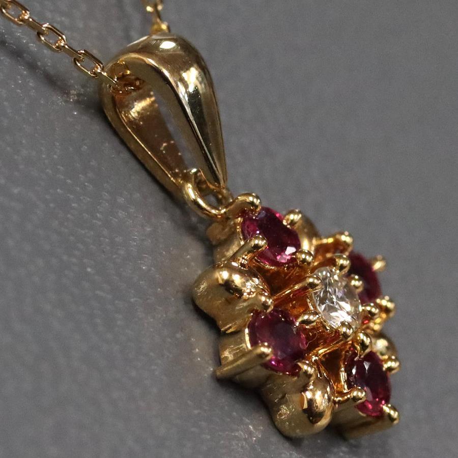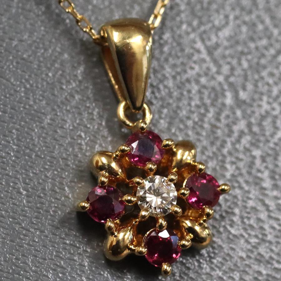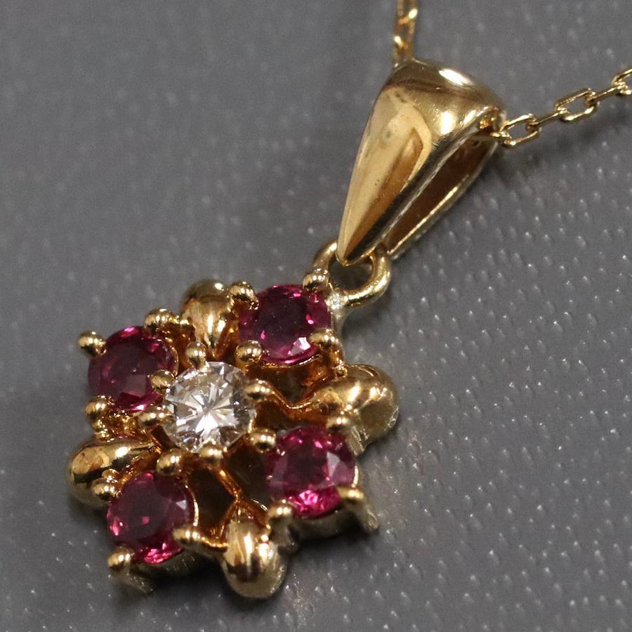 タサキのK18ルビーダイヤモンドペンダントの中古品です。ヘッドはタサキですが、チェーンはタサキではありません。ダイヤモンドは無色に近い色味で、インクルージョンが少なく、非常に照りよく輝きます。ルビーは紫がかった赤色で、彩度 透明度が高く、わずかにインクルージョンがあります。地金には小傷があります。+---+---+---+---+---+。{状態}A{素材}トップK18YG,ルビー,ダイヤモンドチェーンK18YG{サイズ}トップ約W10mm × H15mm(バチカン含む)チェーン長約40cm。{その他}D0.06,2.5g。{付属品}なし(サービス箱をお付けします){お問合せ商品番号}26013142+---+---+---+---+---+。