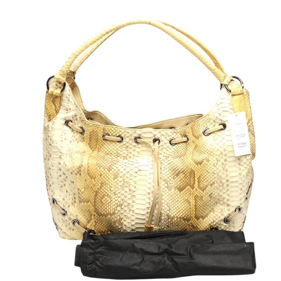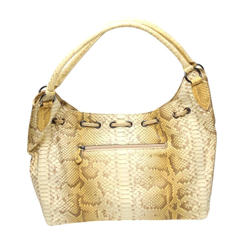 ☆軽さと独特の質感が特徴のパイソン革を使用したハンドバッグ!使いやすいサイズで荷物の出し入れが大変しやすく、また携帯用ポケットやファスナーポケット、背面ポケットなどがあり収納力も高いとっても使いやすいお品です♪