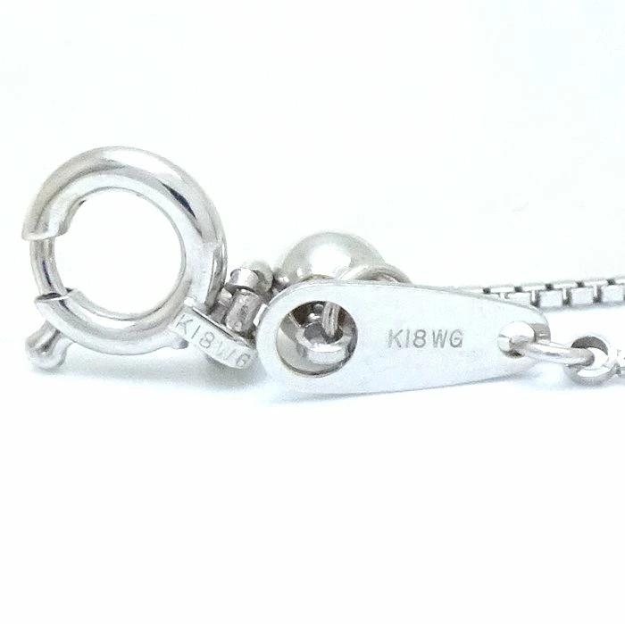 | 商品説明 | | 取扱店舗 | ミドリヤ本店 | | 状態 | 中古Aランク | | ダイヤ品質評価 | ★★★ | | 素材 | K18WG ホワイトゴールド | | サイズ | 45.5cm(アジャスター付き 調節可能) [トップ]縦21.1mm x 横6.1mm