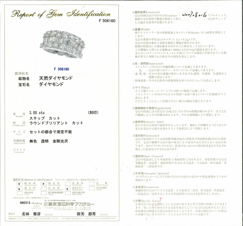 | 石目 | 3.00 刻印 (ダイヤモンド 計3.00ct) |