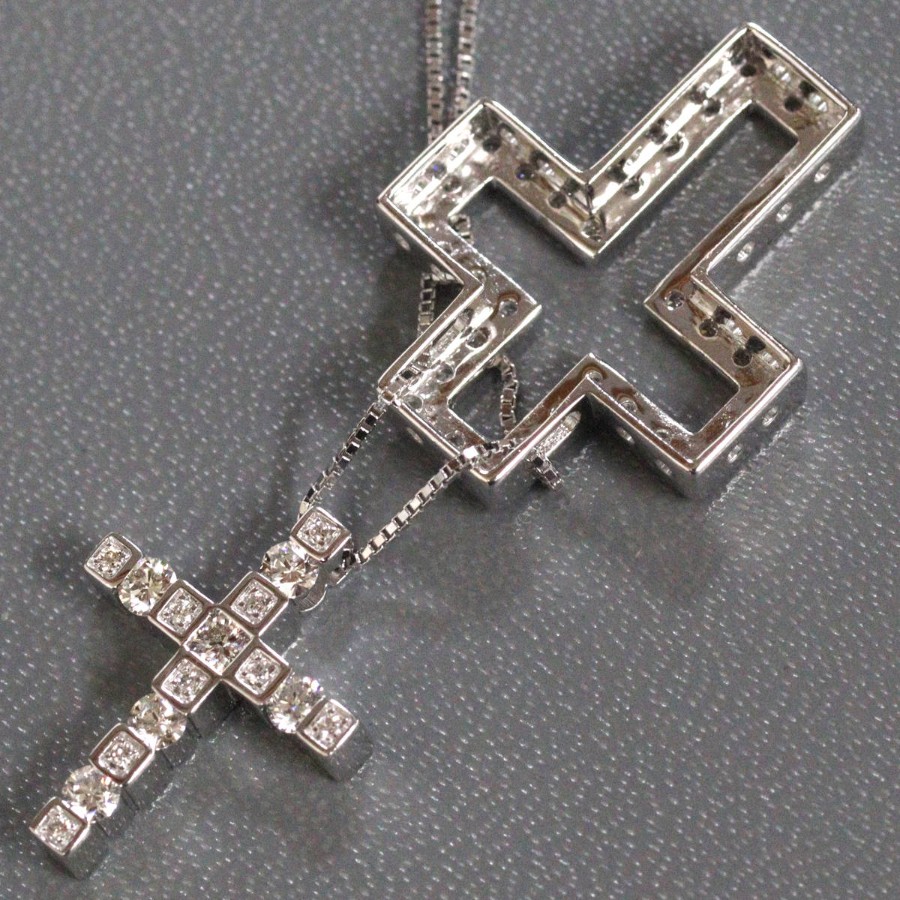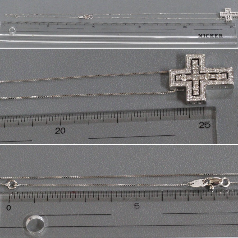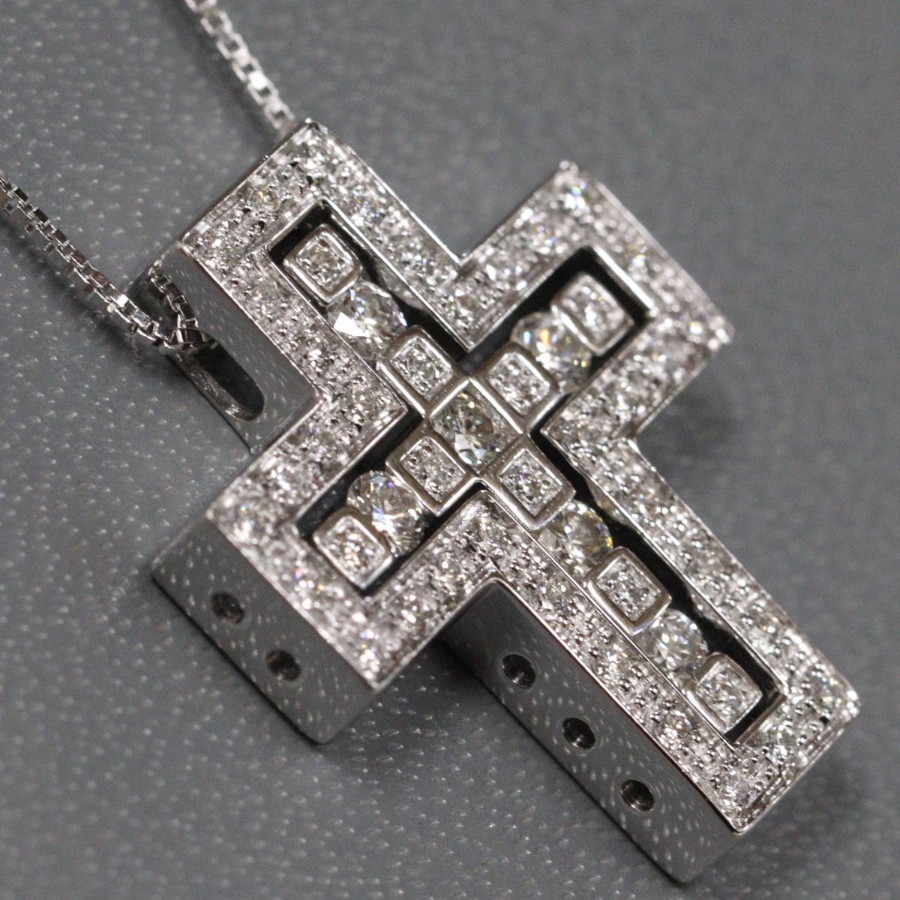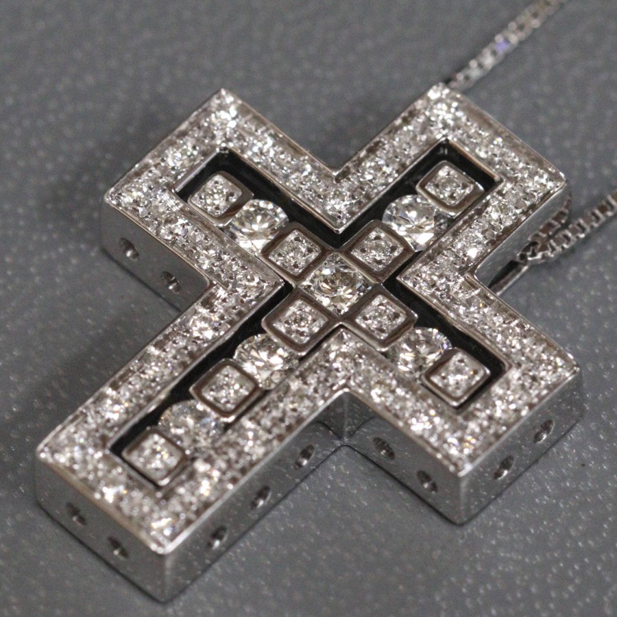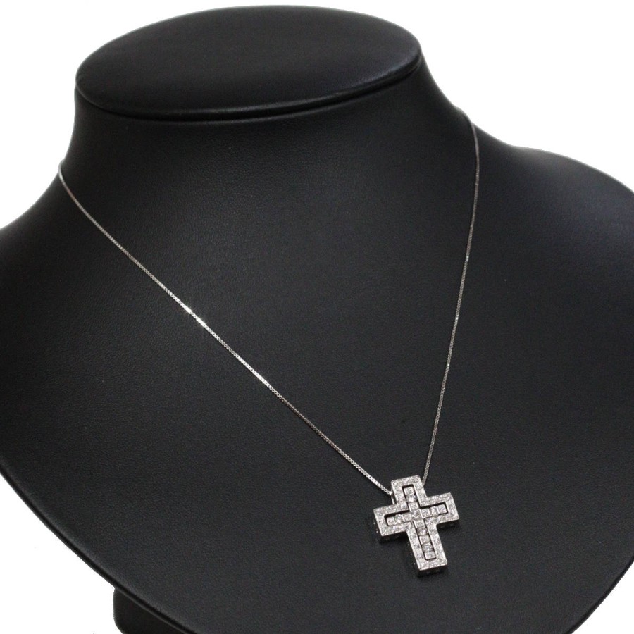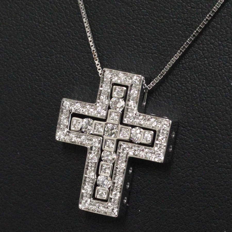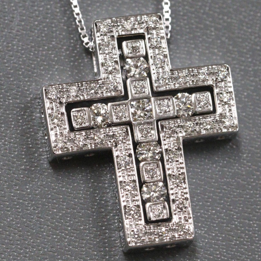 ダミアーニのベル エポック 750WGダイヤモンドネックレス クロス Sサイズ(20039535)の中古品です。クロスモチーフで、良質なダイヤモンドがセットされています。トップに刻印がない旧型です。地金には小傷がありますが、肉眼ではわかりません。+---+---+---+---+---+。{状態}A{素材}トップ750(K18WG),ダイヤモンドチェーン750(K18WG),ダイヤモンド{サイズ}トップ約W18mm × H22mm。チェーン長約48.5cm。{その他}7.8g約41cm,48.5cmの二段階調整。{付属品}なし(サービス箱をお付けします){お問合せ商品番号}26033093+---+---+---+---+---+。