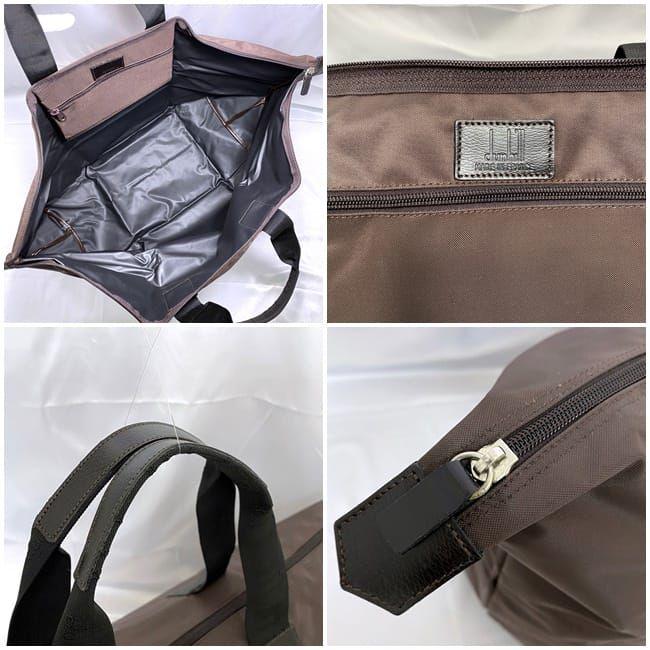 商品名:ポーチ付きトートバッグブランド名:ダンヒル/dunhill商品ランク:Sランク素材:ナイロンレザーサイズ:(約)ポーチw:25cm×h:17cm×d:3.5cmトートバッグw:43cm×h:35cm×d:19cm型番・品番:LU1010Bカラー:ブラウンサイドカー仕様:トートバッグ:ファスナーポケット×1ポーチ:外:ファスナポケット×1詳細説明:ポーチとトートバッグのファスナー金具に汚れ、ポーチ背面に汚れ等ございますが、タグ付きの未使用品ですので使用感はなく非常に綺麗なお品物です。稀に移動やディスプレイの際にできた小傷がある場合がございます。コメント:ワンポイントロゴのシンプルなデザインに、ナイロン素材を使用した軽量トートバッグ。コンパクトサイズのポーチも付属しており、どちらも大変使い勝手の良いお品物です。商品番号:ec-20094no,55087459240502