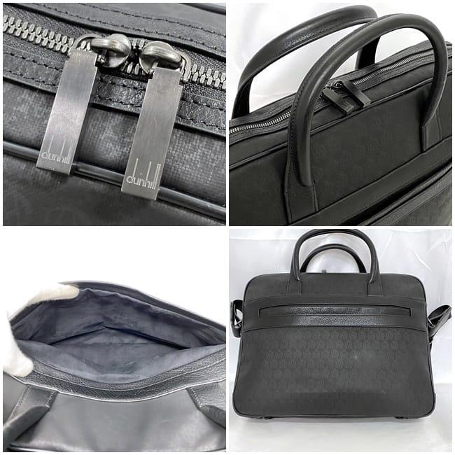ダンヒル 2way ビジネスバッグ ec-22393 ブラック ウィンザー 美品 レザー 中古 dunhill ブリーフケース 黒 書類 バッグ ショルダー 肩掛け ロゴ 総柄 ファスナー ビジネス ハンドバッグ a4 パソコン 大容量 メンズ レディース ブランド 本物 鑑定済み