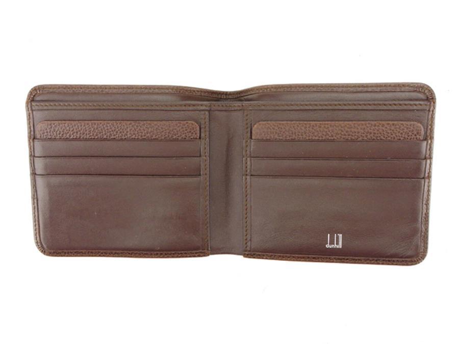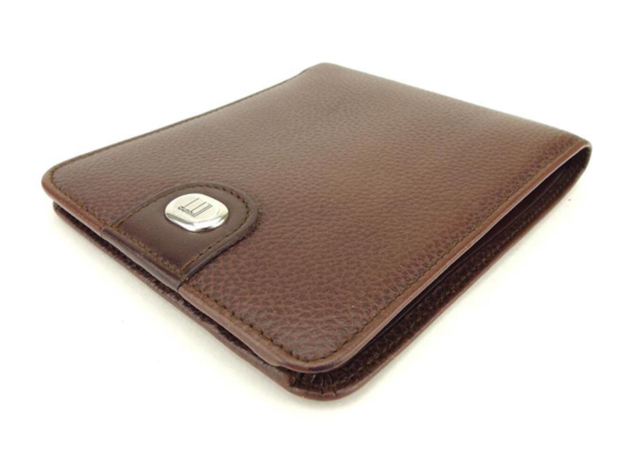 Dunhill billfold with logo plate, brown and silver, women's, pre-owned