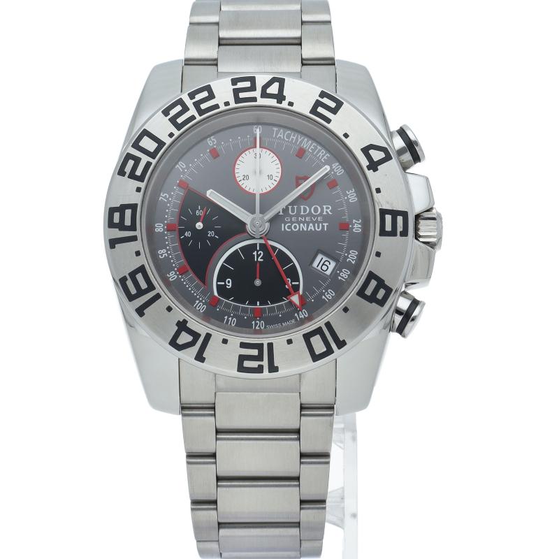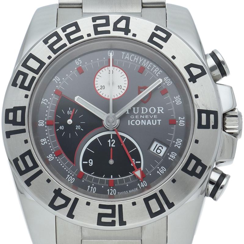 商品説明:ロレックスのデュフュージョンブランドとして、ロレックス譲りの高い機能性を誇る「TUDOR」。ベゼルの大きな数字のインデックスが特徴で、GMT機能を搭載してます。グレーとブラックに加え、レッドがワンポイントで使われているカラーリングがスポーティーな印象を与えてくれます。