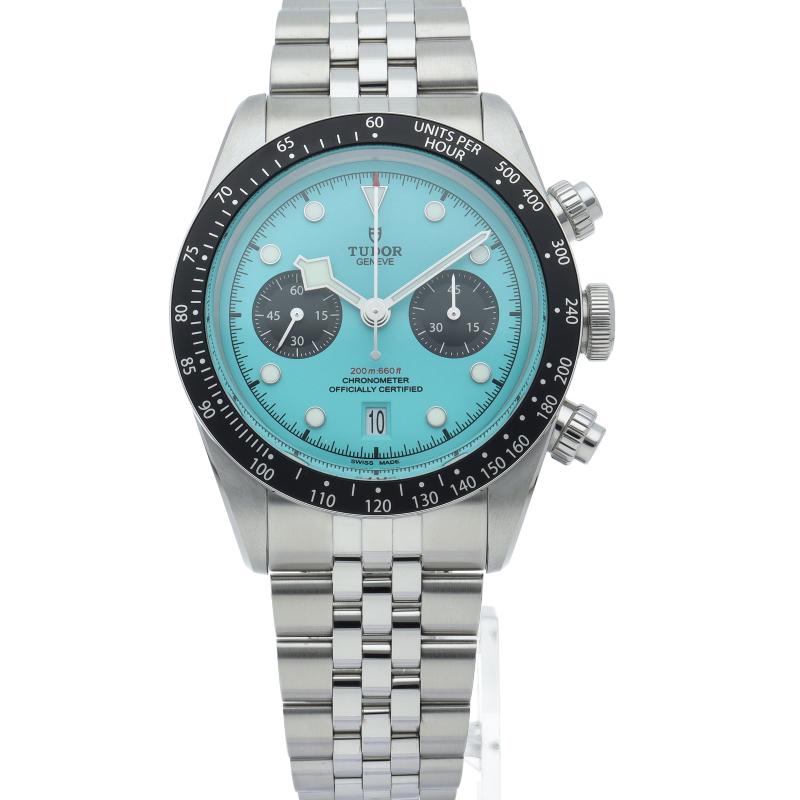 商品説明:チューダーの初期のサブマリーナに使用されていた通称“イカ針”を採用した「ブラックベイ」。70時間パワーリザーブの自社製ムーブメント「MT5813」搭載。フラミンゴが好むことで知られる熱帯の水辺特有「フラミンゴブルー」と呼ばれるターコイズカラーダイヤルです。