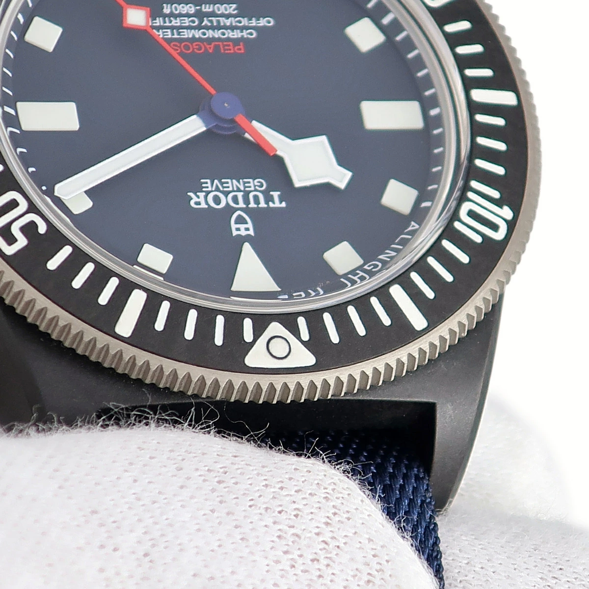 Tudor Pelagos FXD 25707KN-0001, like new, random serial number, blue/navy blue dial, "snowflake" hands, Tudor men's automatic watch, navy blue. [Used]