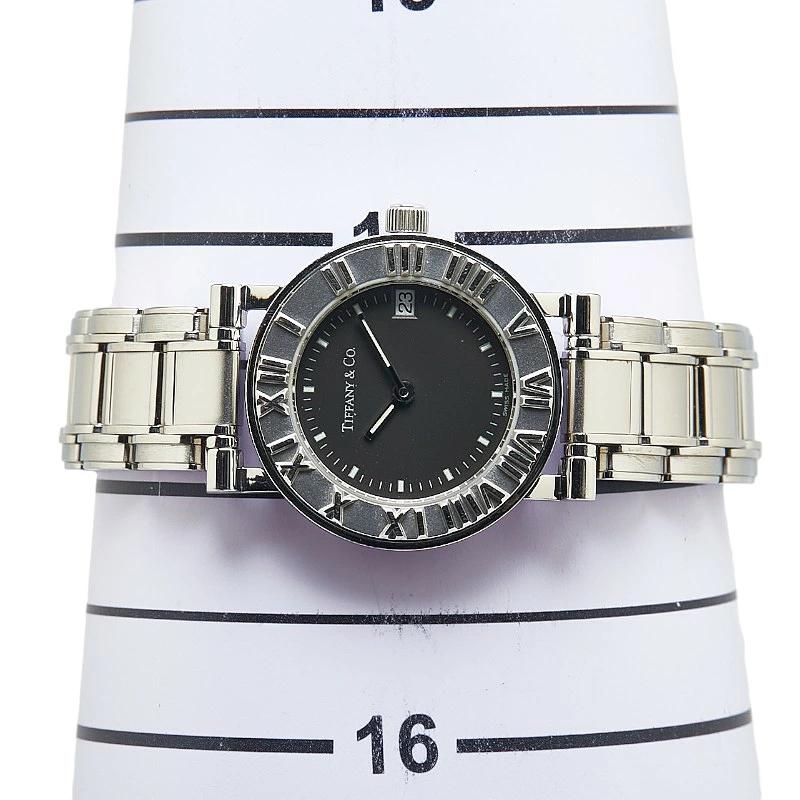 Pre-owned Tiffany & Co. Atlas Quartz Watch with Black Dial and Stainless Steel, Women's
