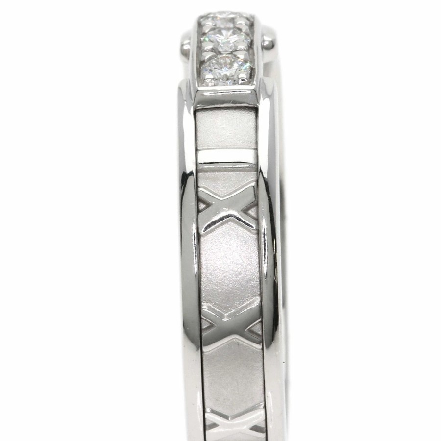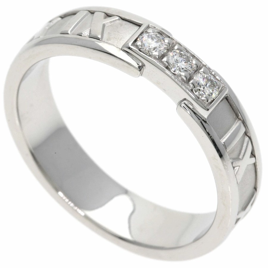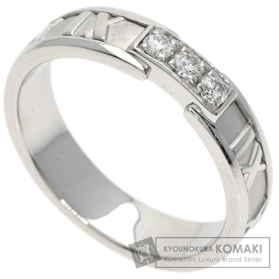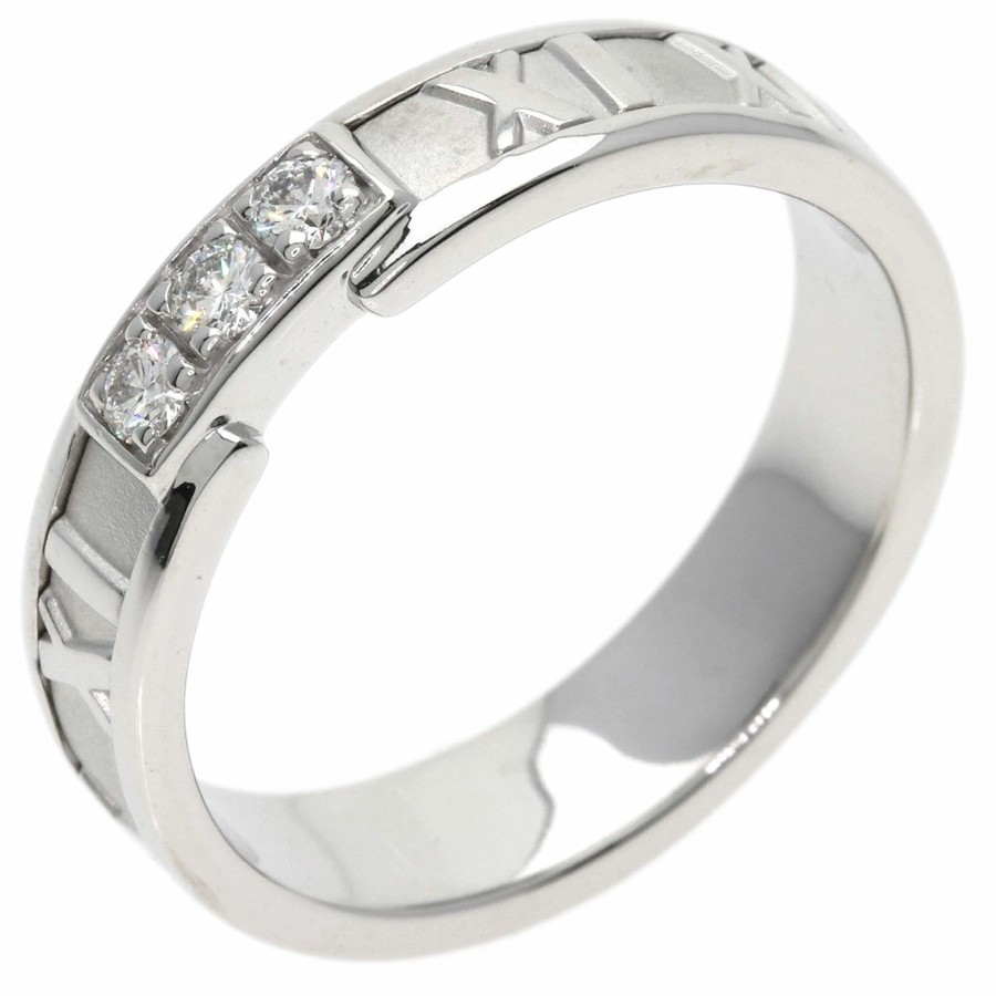 Tiffany & Co. Atlas 3-Diamond Ring, K18 White Gold, Unisex [Pre-owned]