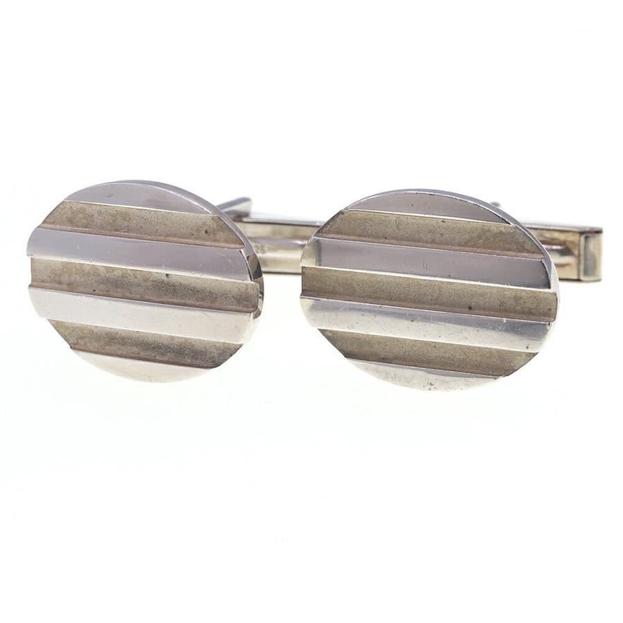 ティファニーカフスシルバーSVスターリングシルバー925中古カフスボタンカフリンクスストライプスーツビジネスメンズ男性ボーダーグルーブオーバルTIFFANY&CO