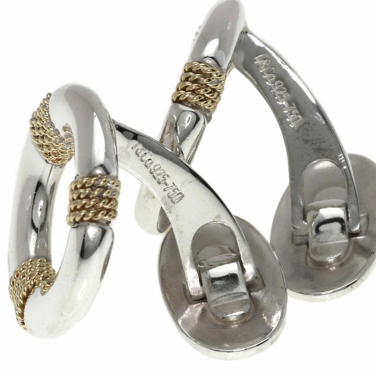 Tiffany & Co. Circle Cufflinks, Silver/18K Yellow Gold, Men's, Pre-owned, TIFFANY & Co.