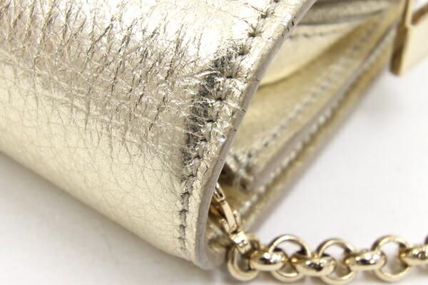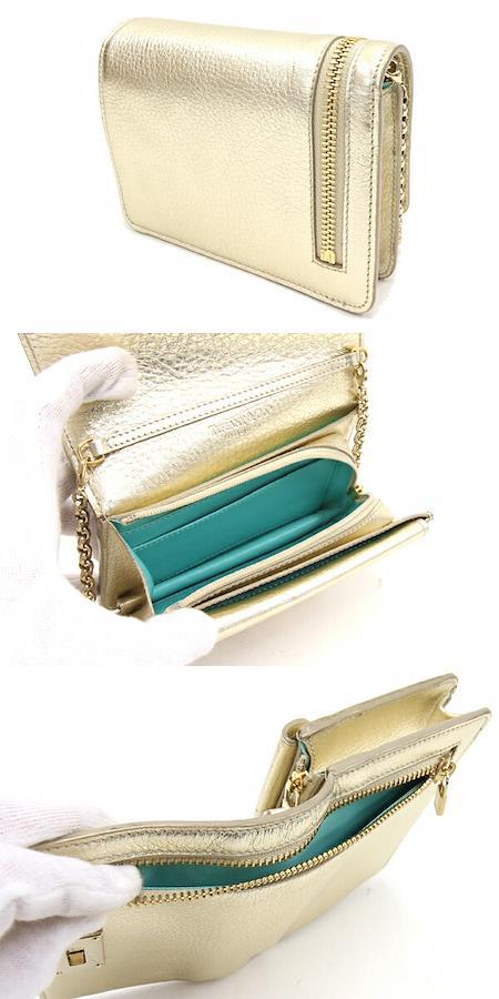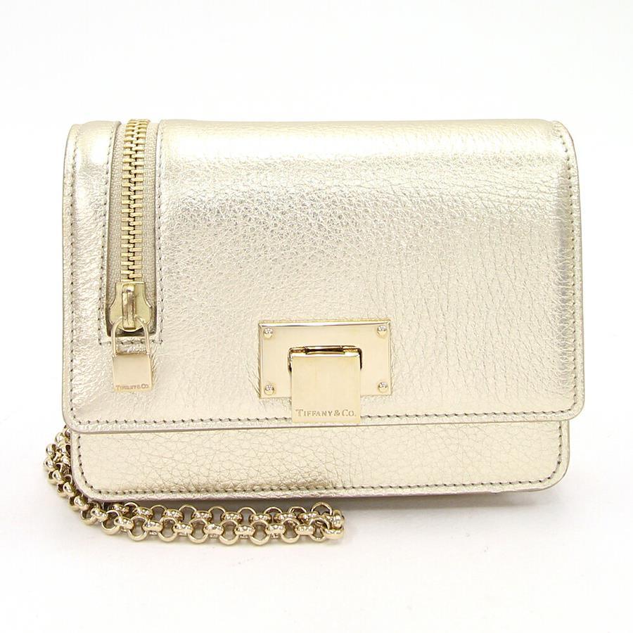 ティファニーショルダーウォレットシャンパンゴールドレザー中古チェーンショルダーミニお財布バッグレディース斜めがけTIFFANY&Co.