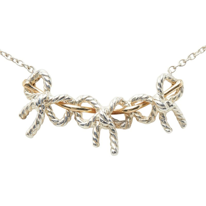 Tiffany & Co. Triple Ribbon Necklace, Silver and Gold (SV925, 18K Gold Combination), Women's, TIFFANY&Co. [Pre-owned]