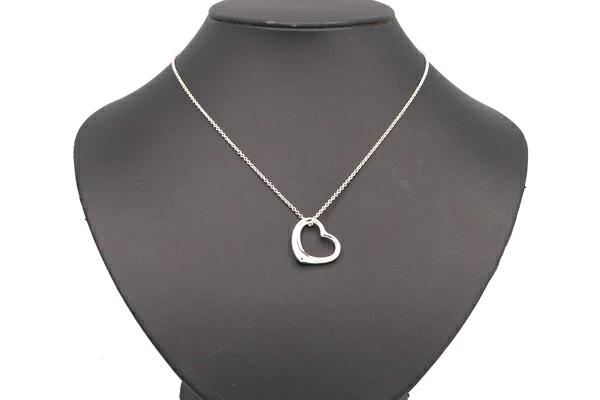 Tiffany & Co. necklace, Elsa Peretti open heart, sterling silver (925), pre-owned, pendant, choker, accessory, women's, TIFFANY & CO.