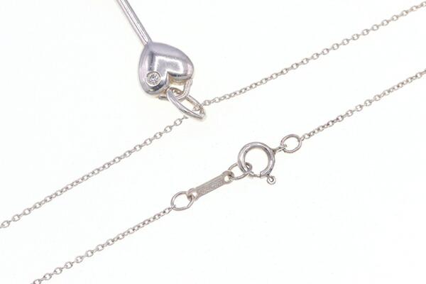 ティファニーネックレスエルサペレッティハートキー1PダイヤSVスターリングシルバー925中古ペンダントアクセサリーチョーカーカギ鍵レディースTIFFANY&CO