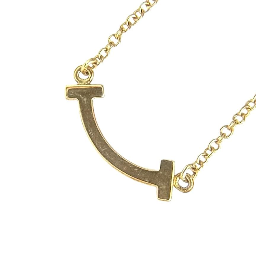Pre-owned Tiffany & Co. T Smile Mini Pendant Necklace for Women, 18K Yellow Gold (Au750), with Adjustable Strap, 62617640, Approx. 2.2g.
