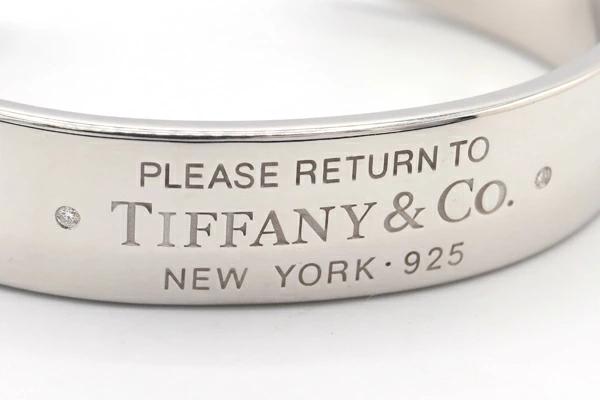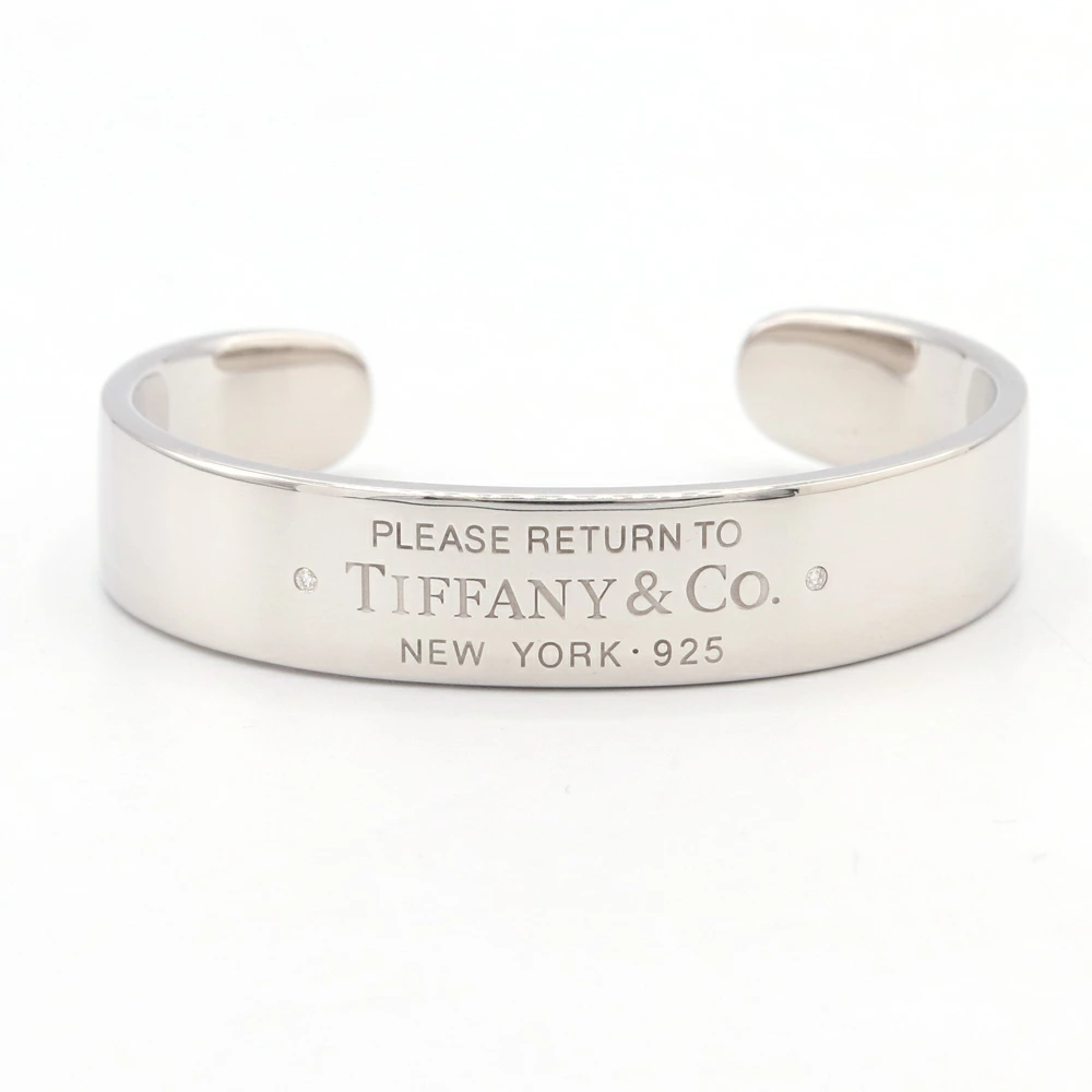 Tiffany & Co. Return to Narrow Cuff Bangle with 2 Diamonds, Sterling Silver 925, Pre-Owned, Women's, TIFFANY & CO.