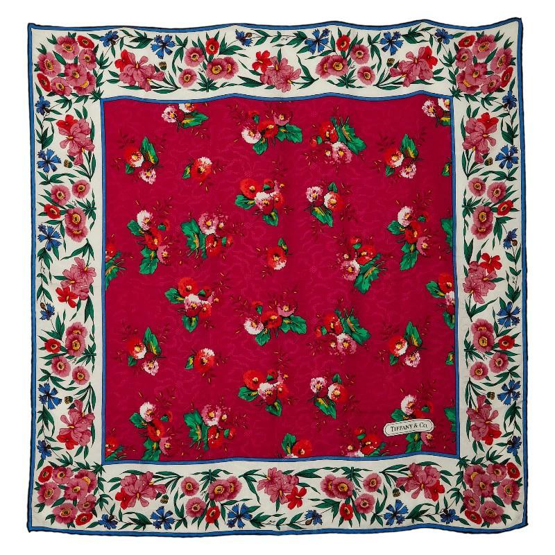 Pre-owned Tiffany & Co. floral scarf in white and multicolor. Women's.