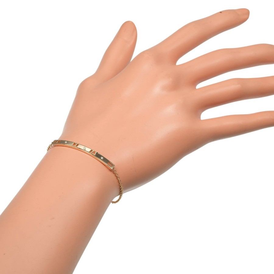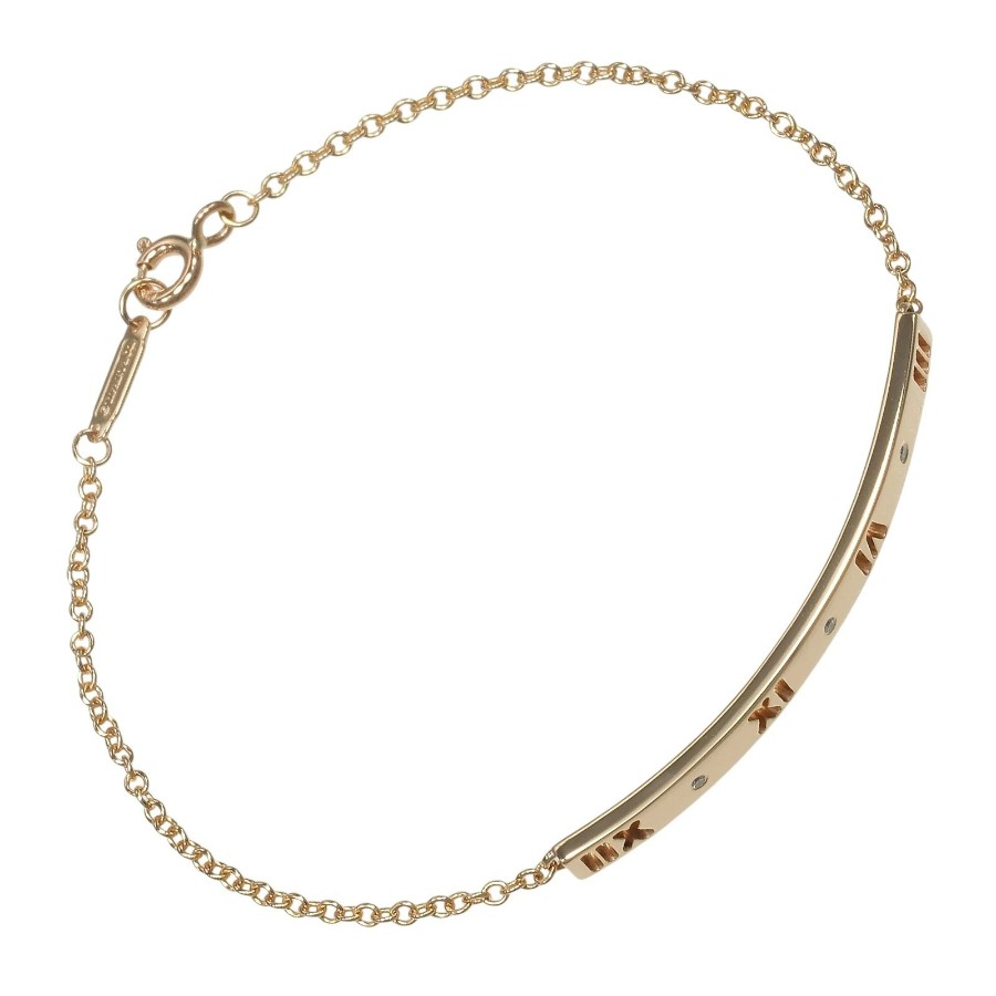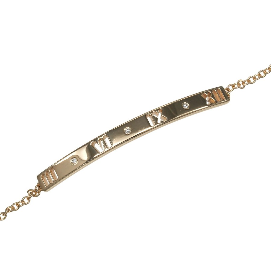 Tiffany & Co. Atlas Bar Bracelet, 18K Pink Gold, Diamonds, Approx. 4g, Used, Grade A