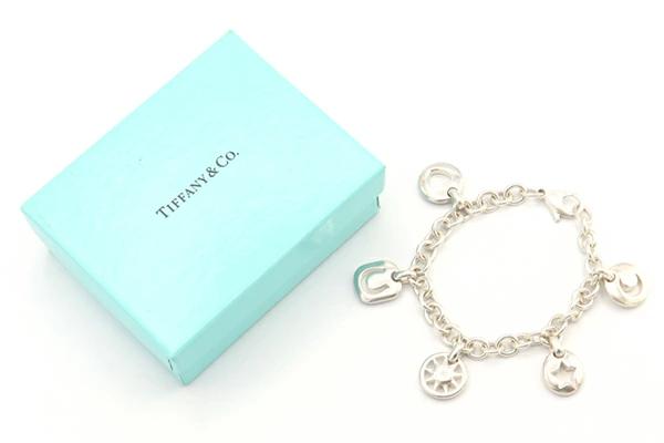 ティファニーブレスレット5チャームSVスターリングシルバー925中古腕輪バングルチェーンブレスレディースTIFFANY&CO