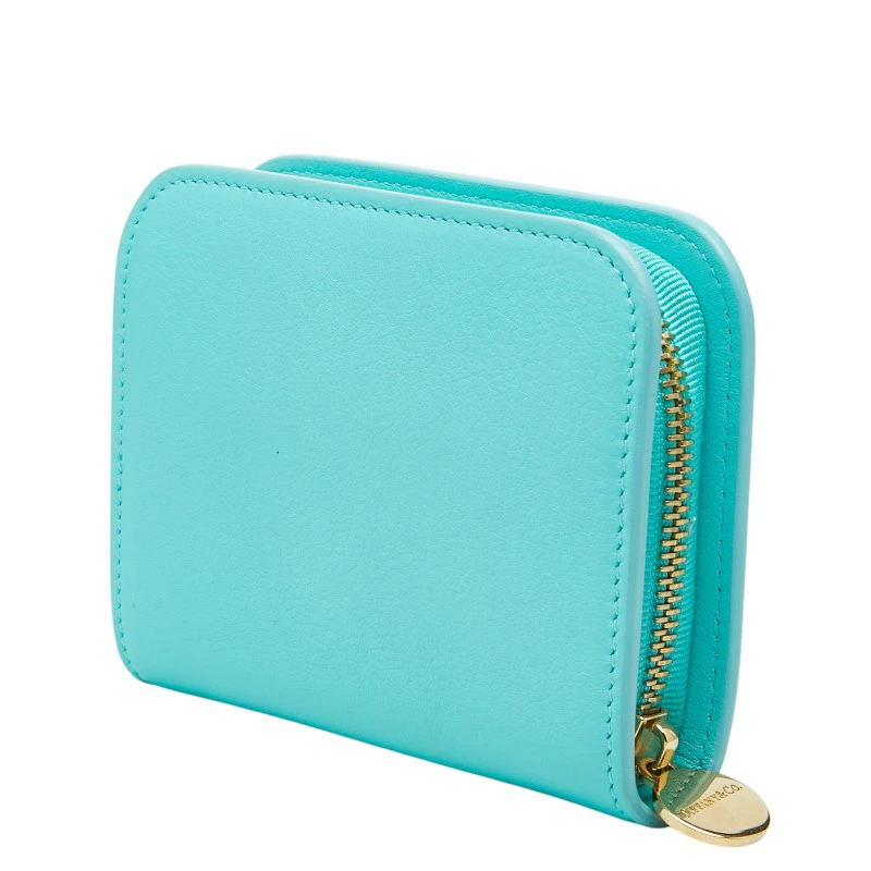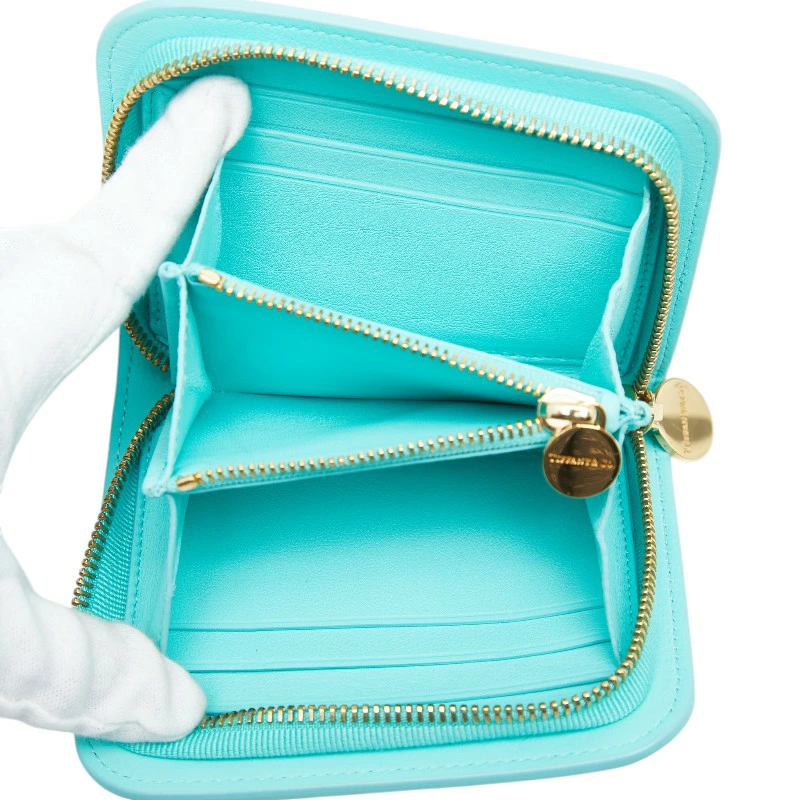 - ティファニー ラウンドファスナー 財布 ティファニーブルー レザー レディース TIFFANY&Co. 【中古】