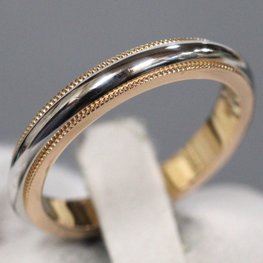 ティファニーの750/Pt950 トゥギャザー ミルグレイン バンド リングの中古品です。6.0gで15号、5.2gで9号のリング2つセットです。リング側面に小傷があり、プラチナにもわずかに小傷があります。外箱の底部に汚れがあります。管理番号2603309626033097+---+---+---+---+---+。{状態}AB{素材}Au750(K18YG)/Pt950{サイズ}当店計測約#9,#15{リング幅}約3mm。{その他}5.2g,6.0g。{付属品}内外箱{お問合せ商品番号}26033096+---+---+---+---+---+。