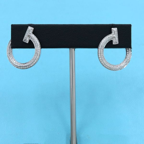 ティファニー、Tワンオープンフープダイヤピアスが入荷いたしました☆大人気シリーズのTワンとなりますが、今回は正面から見ることの出来るフープデザインとなっており、とてもオシャレなピアスとなっております。 さらに、一面にパヴェダイヤモンドがセッティングされているので、その存在感も圧倒的ですね。 存分にティファニーの高級感を味わう事ができるピアスとなっております。 入荷も非常に貴重なピアスとなっておりますので、是非この機会をお見逃しなく♪