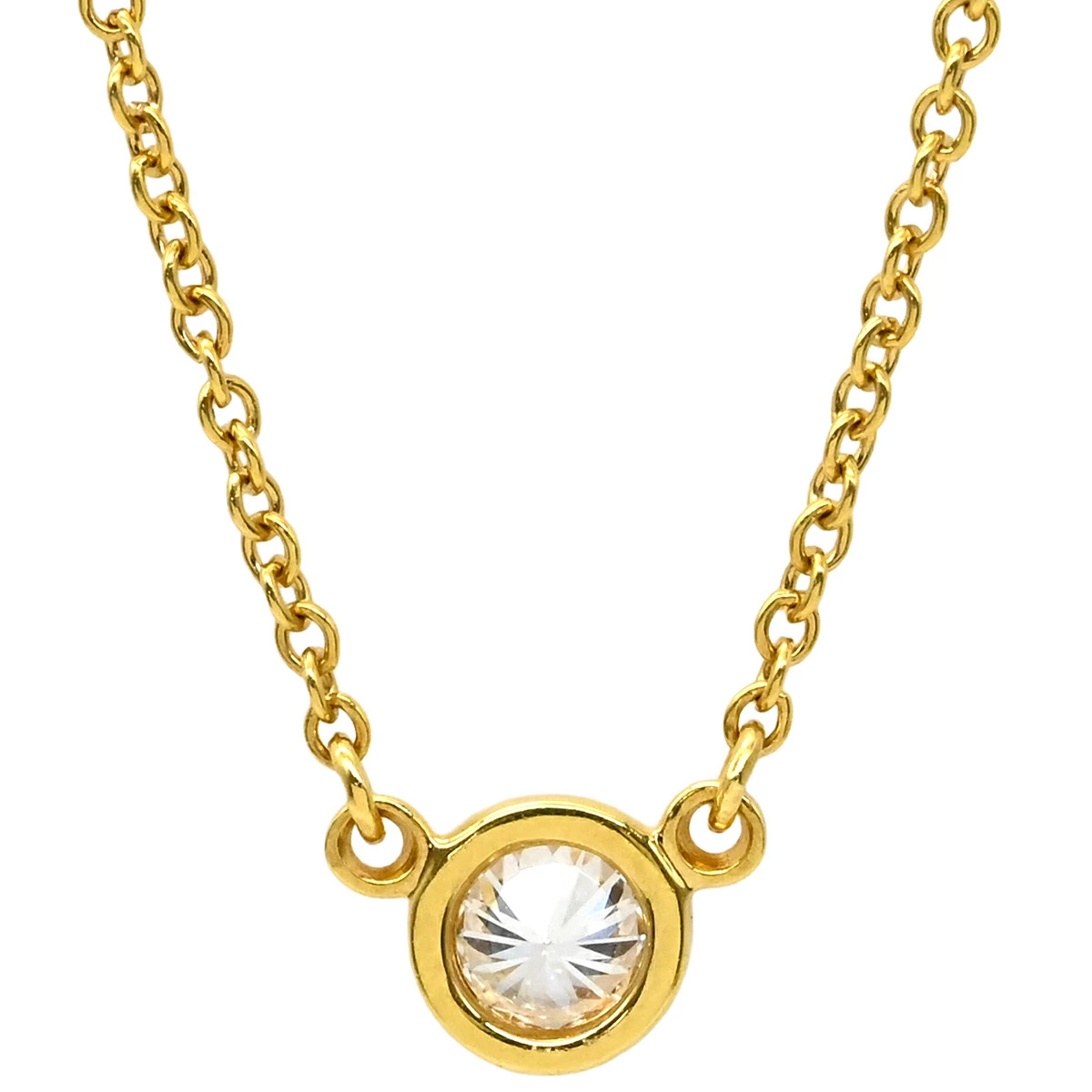 Tiffany & Co. Necklace "By the Yard" Single Diamond Pendant in Yellow Gold 750YG. T&Co. Single Stone. Elsa Peretti. [Pre-owned]