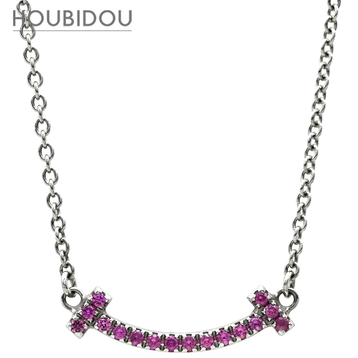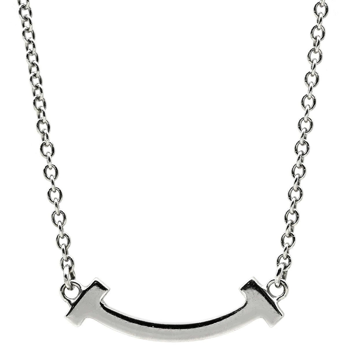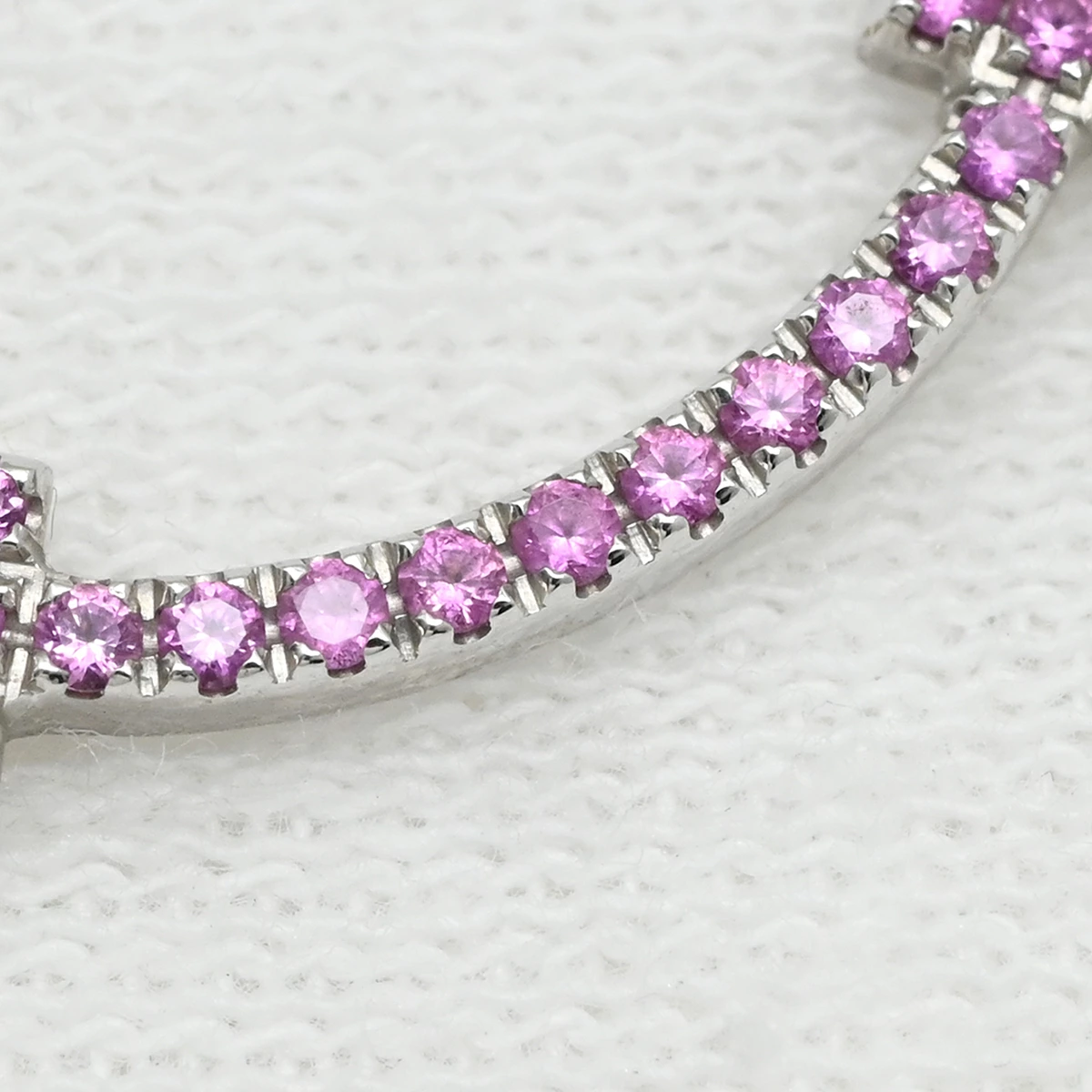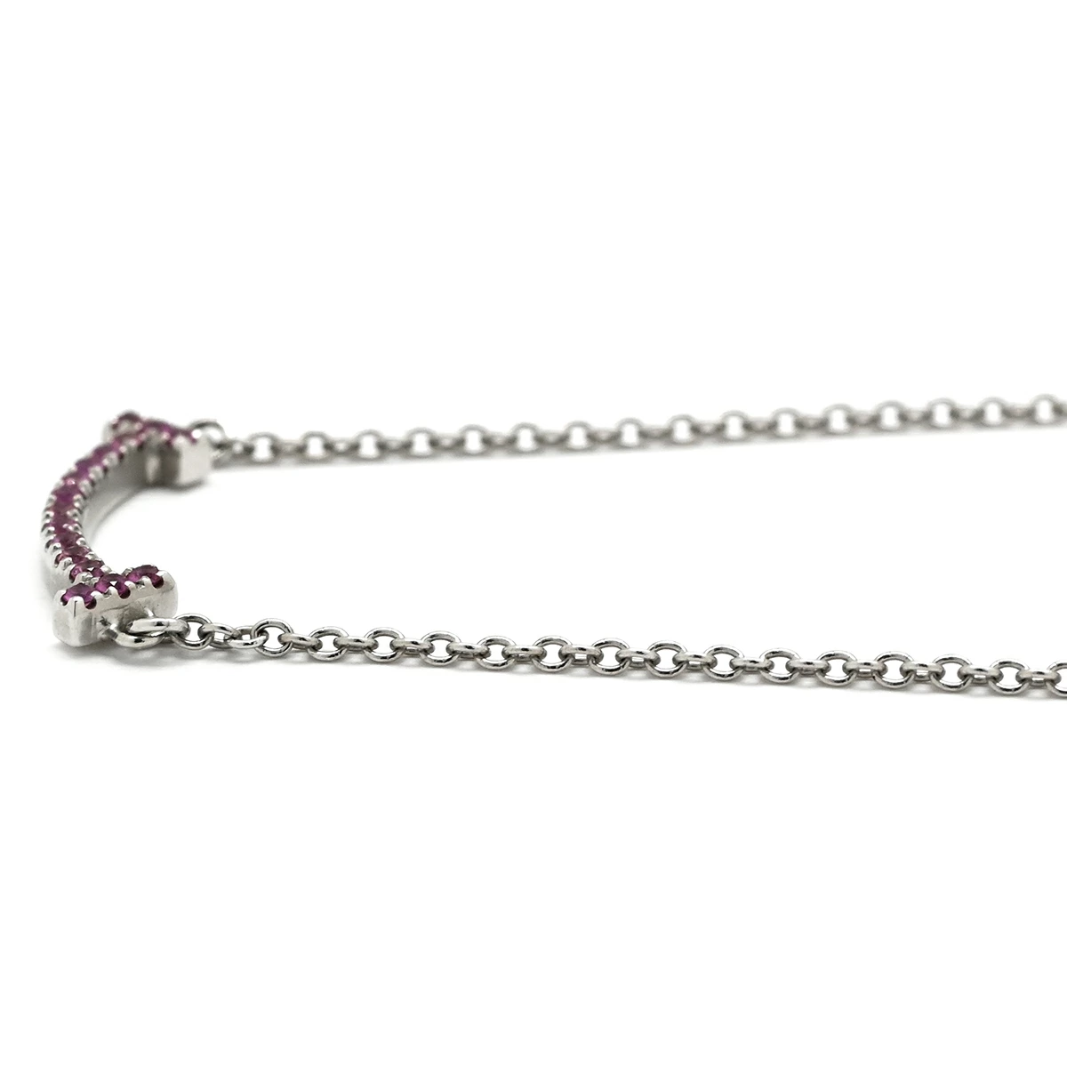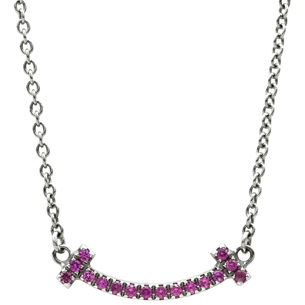 ティファニー Tiffany & Co ネックレス Tスマイル ミニ マイクロ T K18WG ピンクサファイア ピンク×ホワイトゴールド T&Co. T smile Au750 18K ピンクサファイア - レディース 【中古】