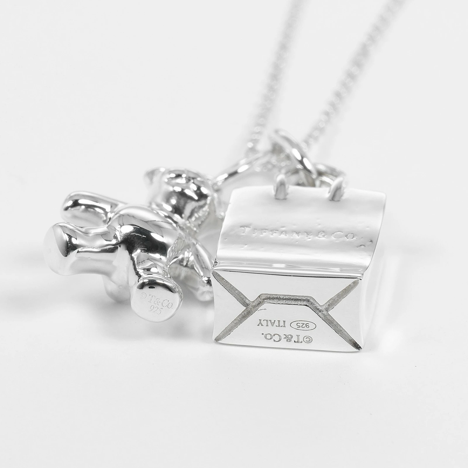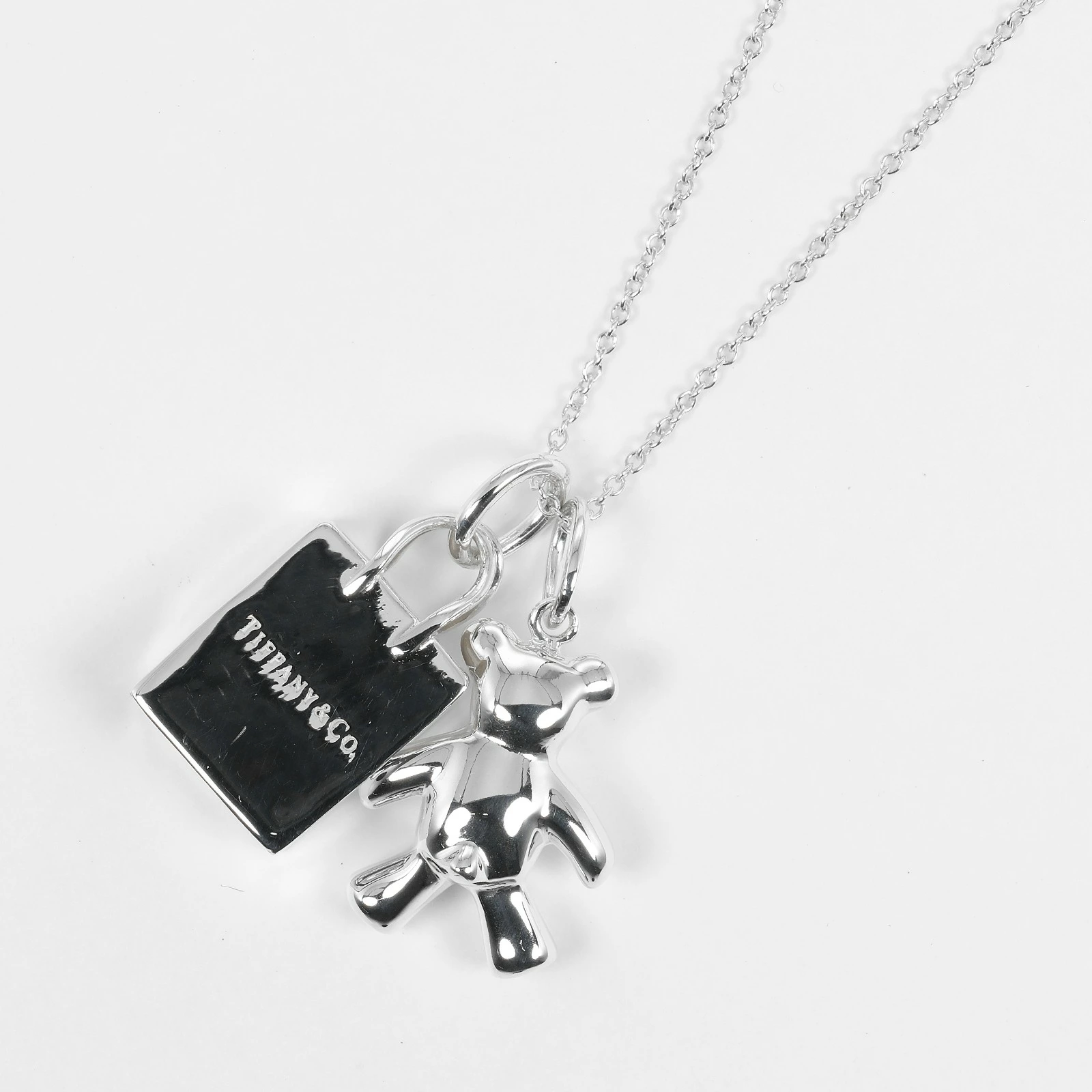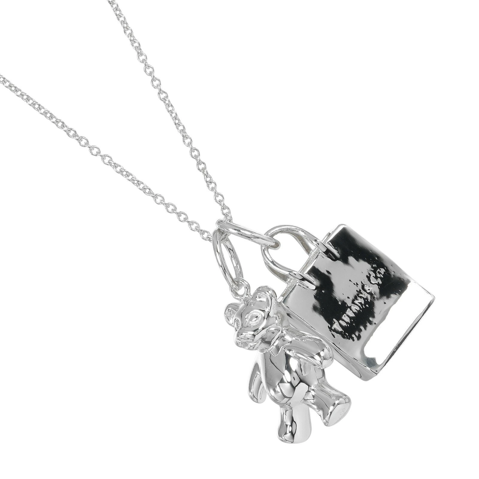 Tiffany & Co. Teddy Bear Shopping Bag Necklace, 925 Sterling Silver, Approx. 8.87g, Women's, Pre-owned, Rank A