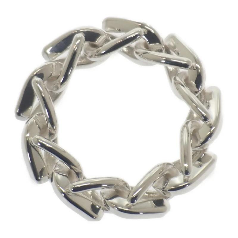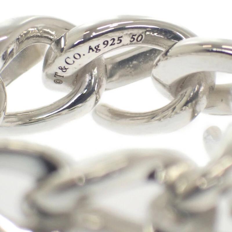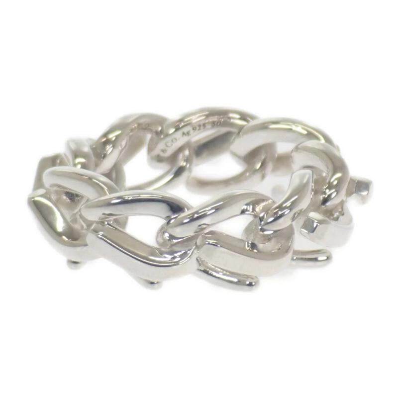スターリングシルバーを力強く磨き上げたハイポリッシュ仕上げが、滑らかな光沢と重厚感を放ちます。チェーンリンクを連想させる立体的なフォルムは、シンプルでありながら存在感抜群。ユニセックスで着用でき、洗練されたミニマルさの中にティファニーらしいエッジを感じられるリングです。