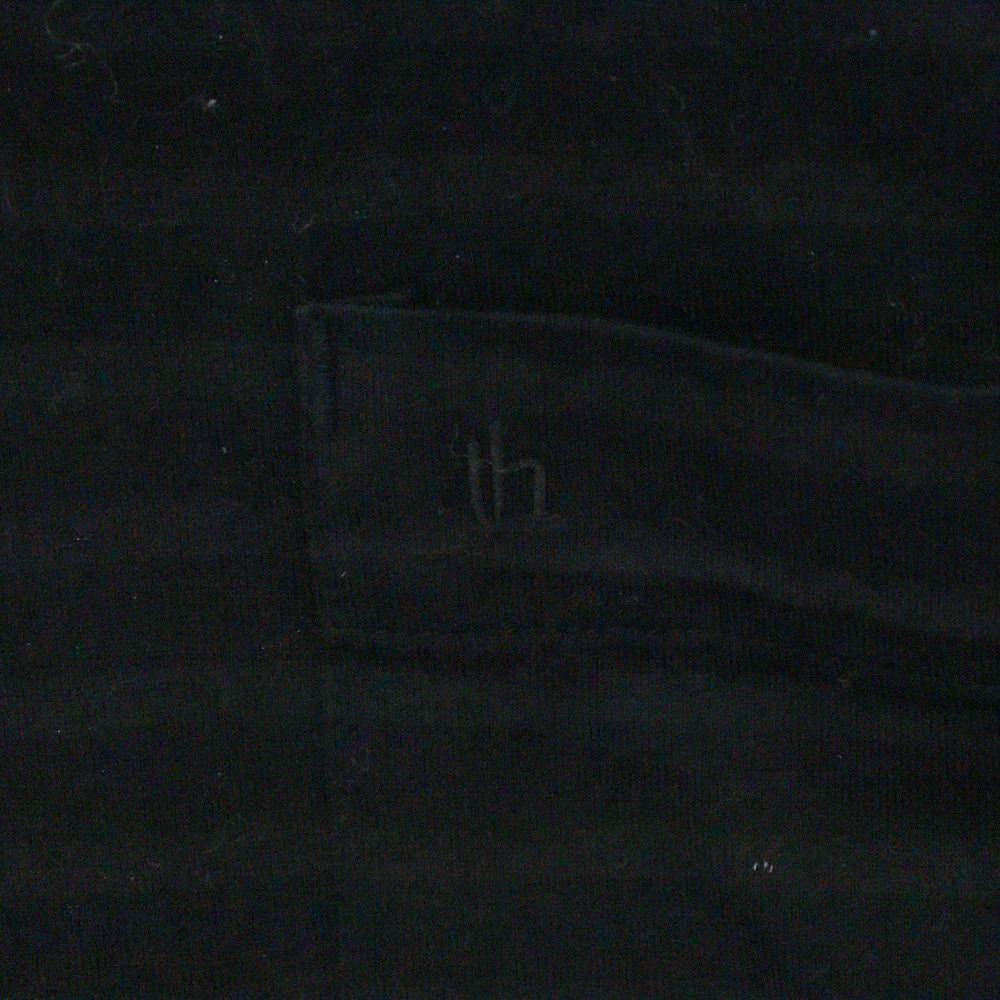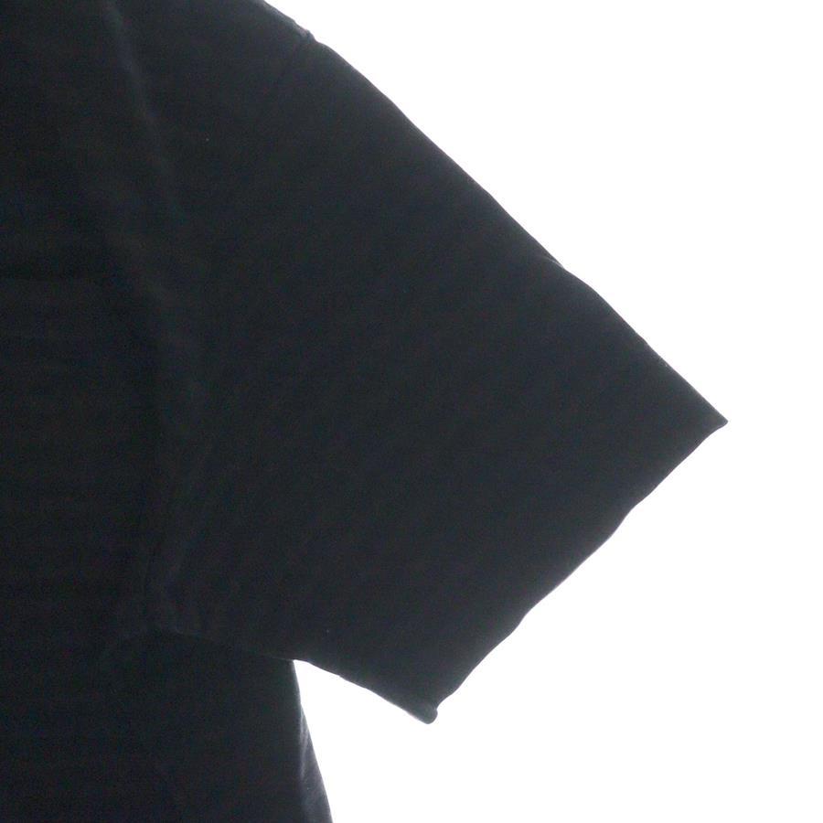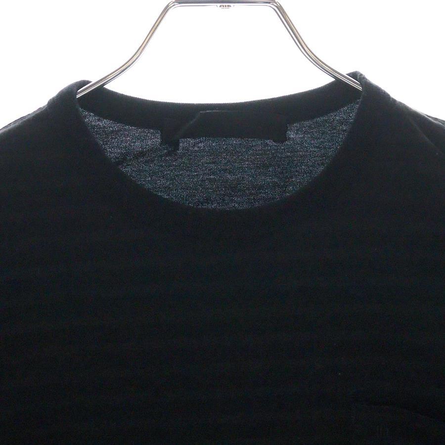[モデル]Oversized T-Shirt オーバーサイズ ボーダー ポケット クルーネック半袖Tシャツ カットソー ブラック 2101-T14-M110