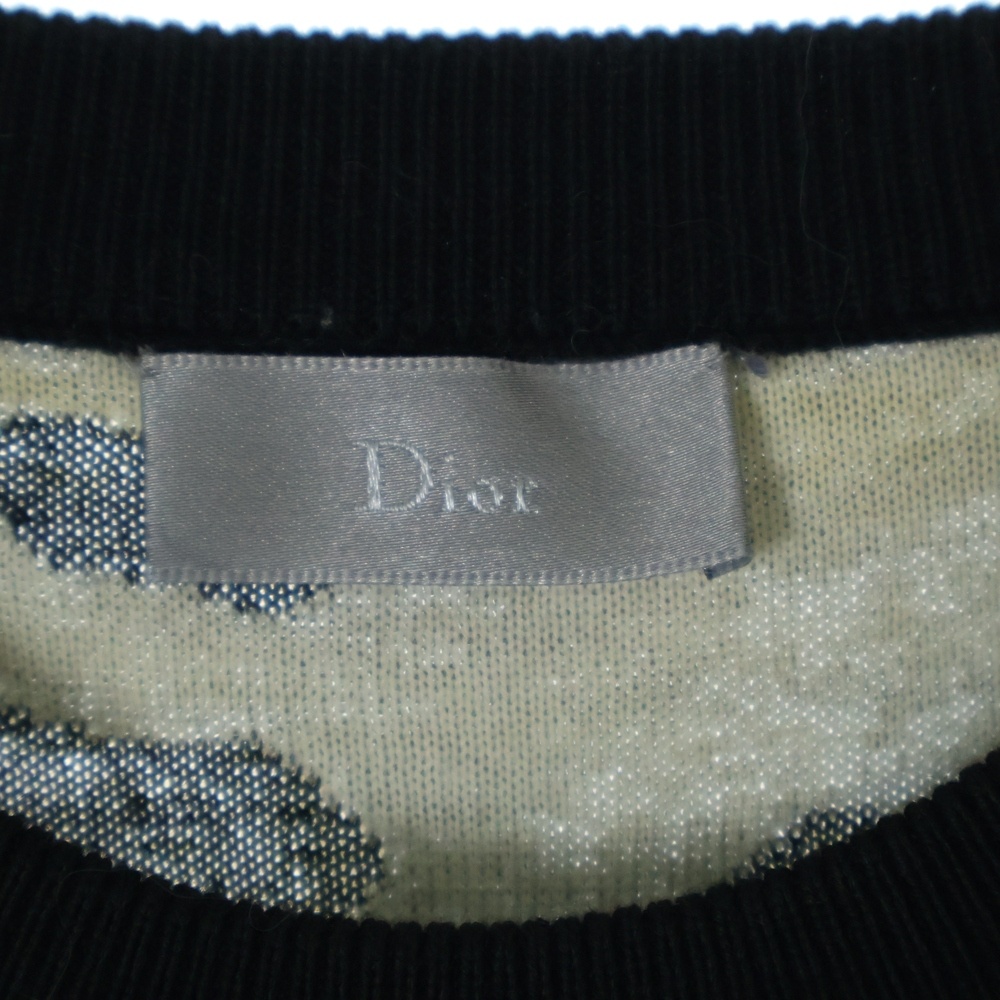 Dior Homme 17SS HOMME Splatter Paint Striped Jacquard Crew Neck Long Sleeve Knit Sweater in Black (763M613ZT316, Size S)