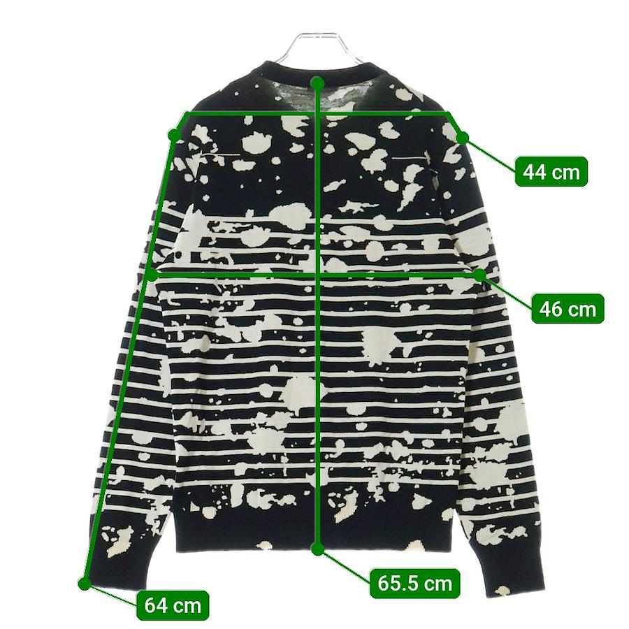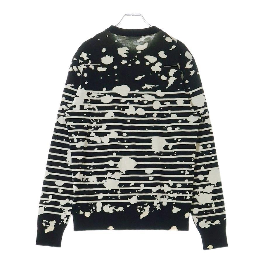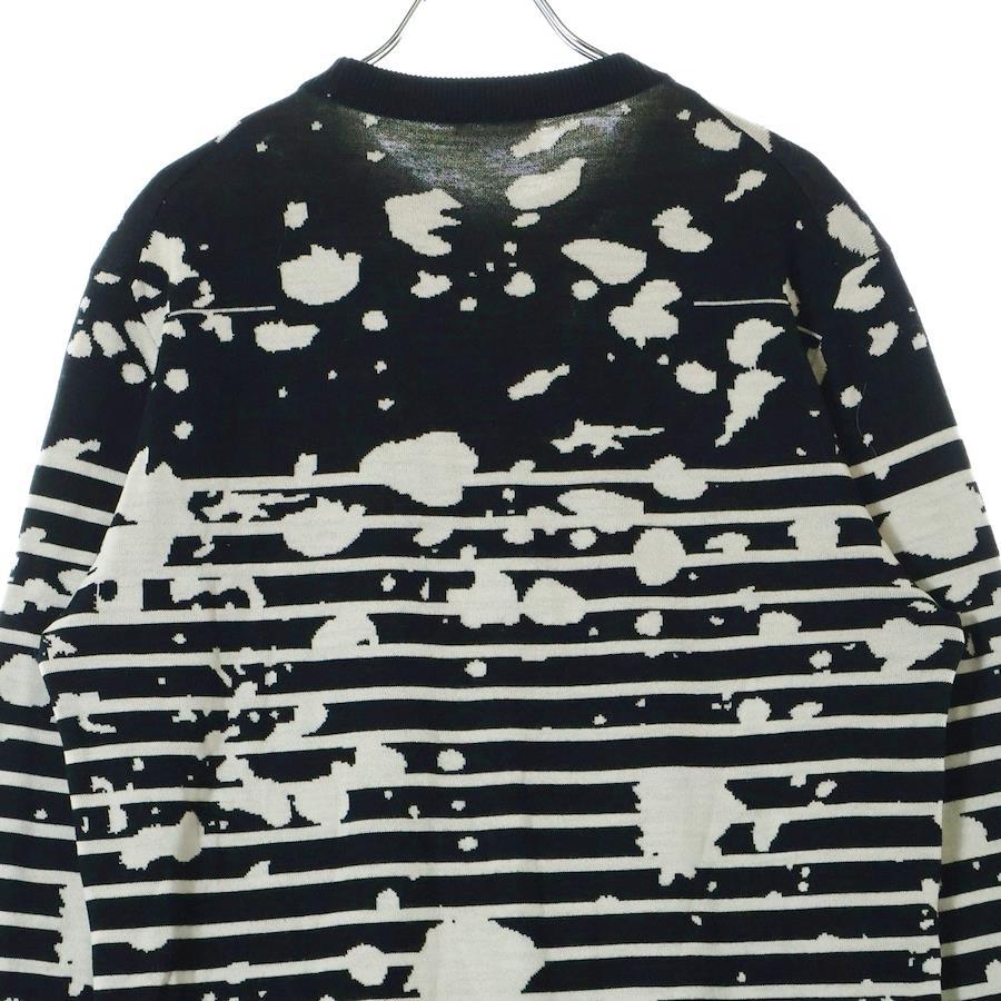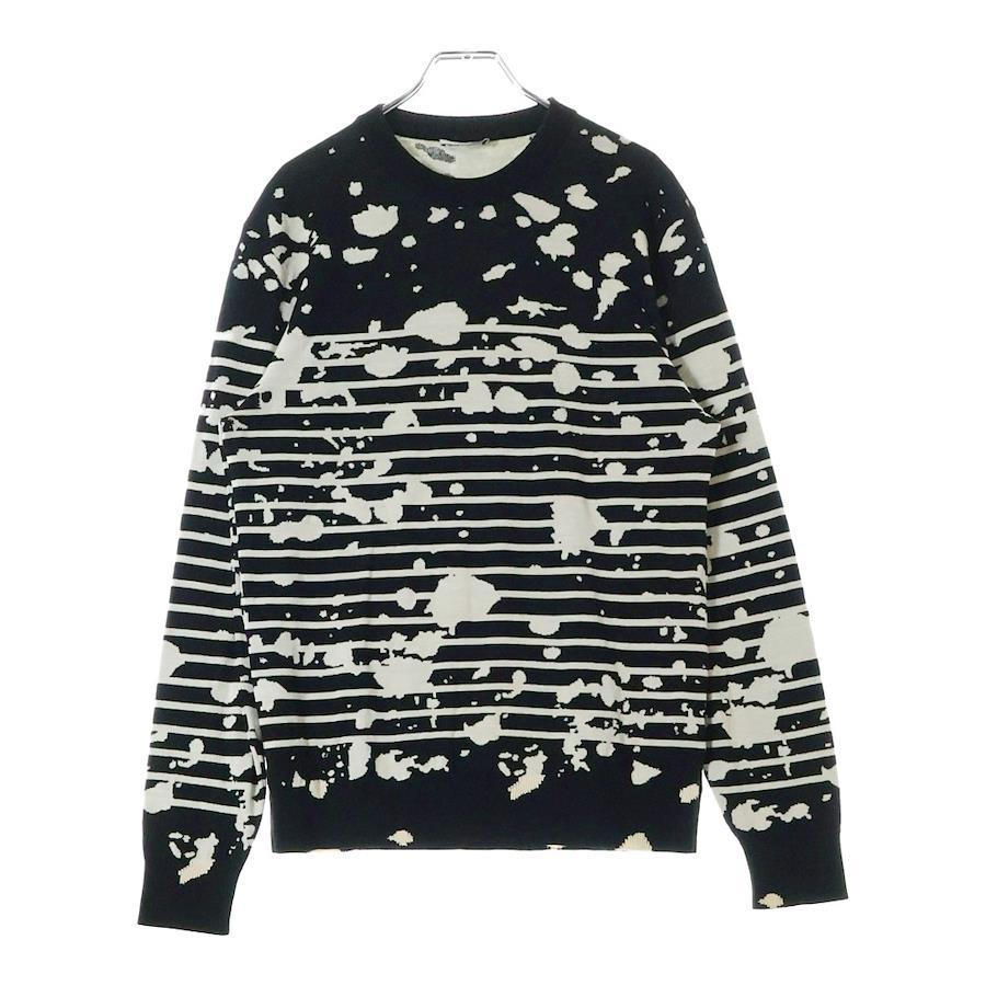 [モデル]17SS HOMME スプラッターペイント ボーダー柄 ジャガード クルーネック ロングスリーブ 長袖ニット セーター ブラック 763M613ZT316