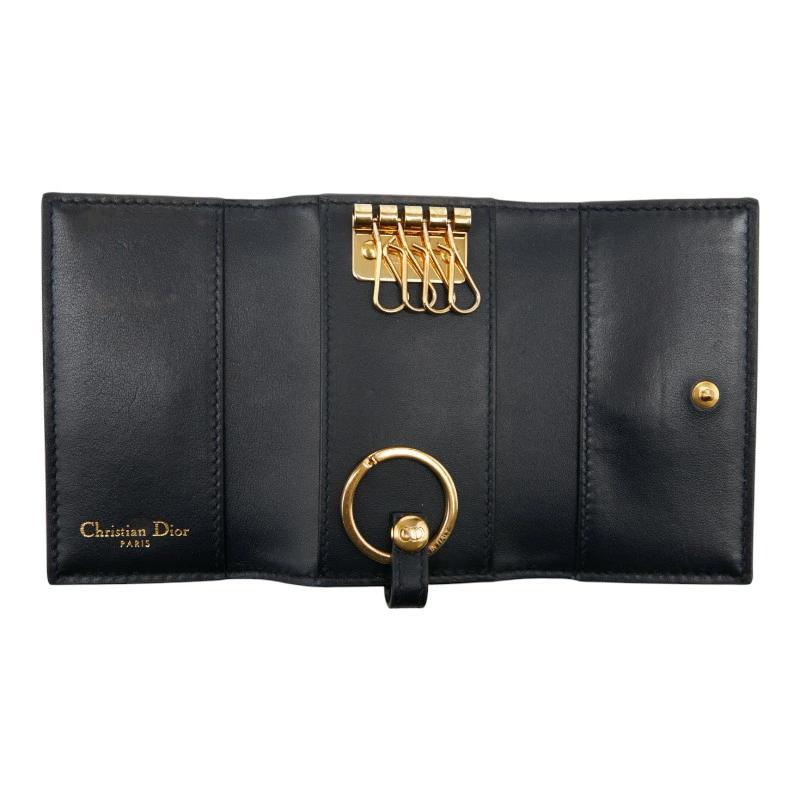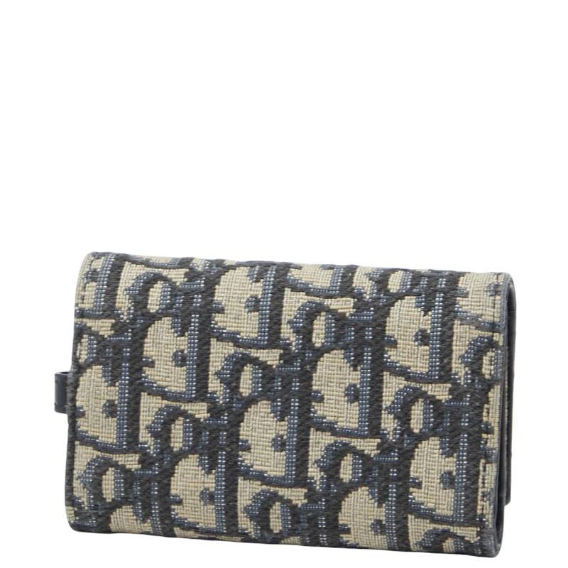 Pre-owned Dior Oblique 4-ring key case in beige and navy canvas and leather. Women's.