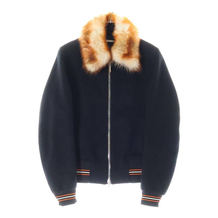 [モデル]カシミヤ混 ジップアップ ファージャケット ブルゾン ブラック 733C467C3183
