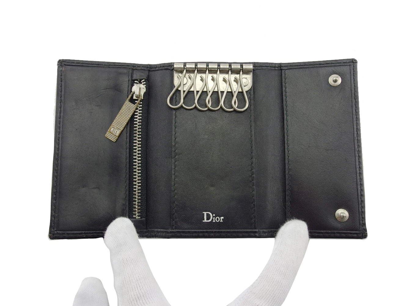 | コンディション | 全体の状態詳細:大きなダメージも無く、まだまだご使用いただけます。 外側:PVC(若干のベタつき、傷、スレ、汚れ、背面に一部加工ハゲ箇所)、ボタンホック(傷、サビ)あり。 内側:レザー(傷、スレ)、ファスナー金具(汚れ、サビ、くすみ)、キーフック(くすみ、傷)あり。 その他、目立たない 傷 汚れ などの一般的使用感があります。 |