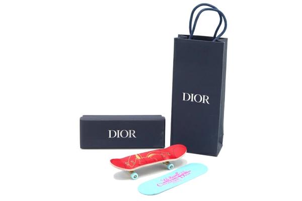 Pre-owned Dior finger skateboard in red and light blue wood. Perfect for interior decoration. Features the Dior logo.